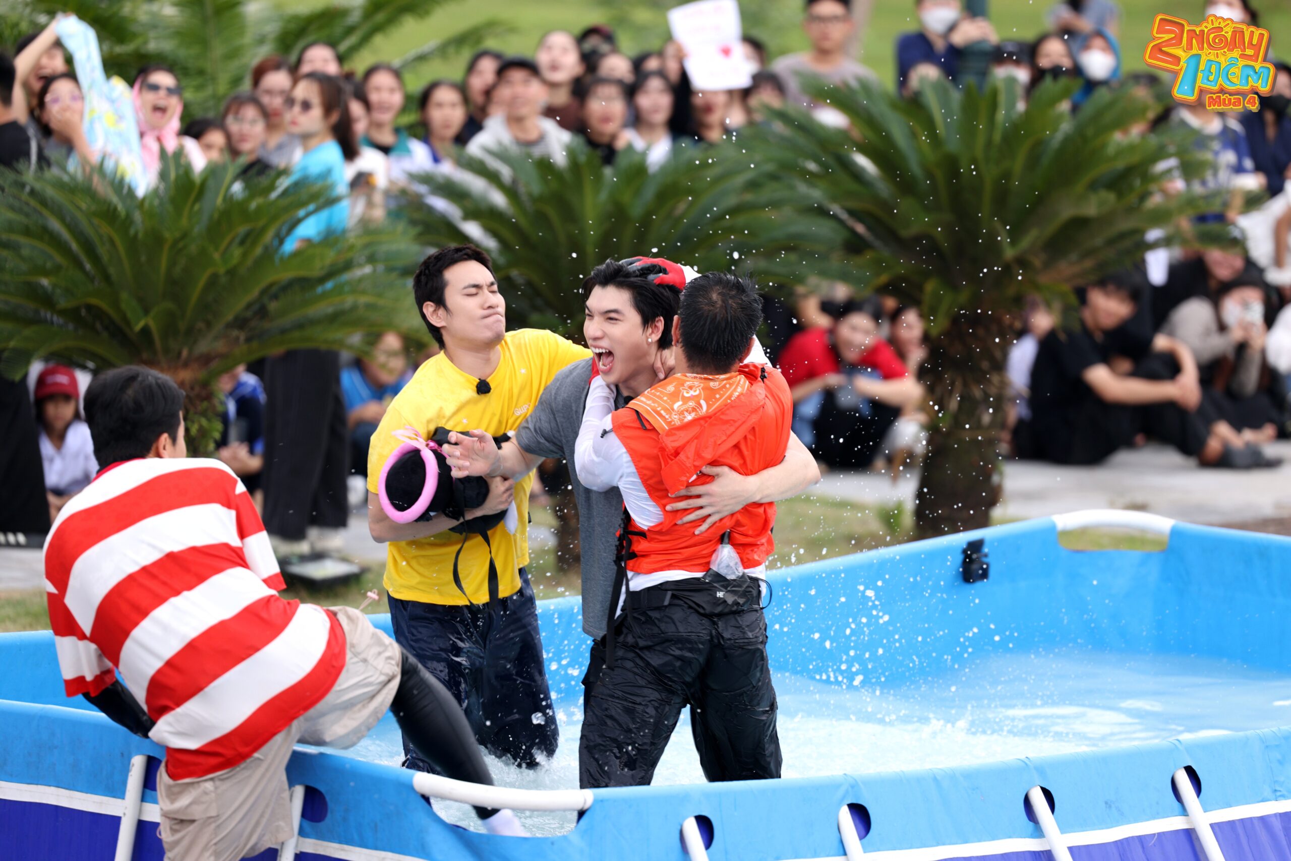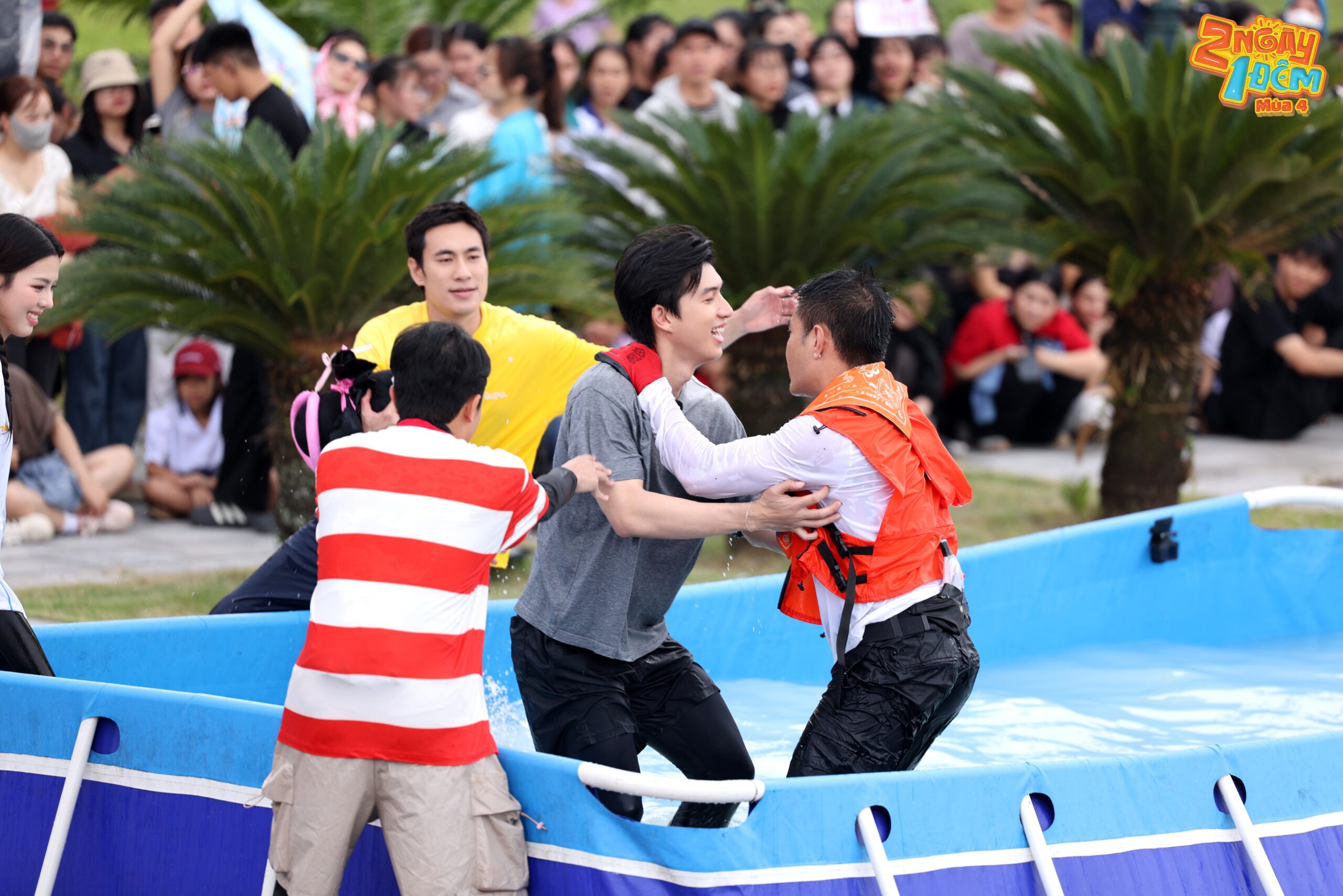 Thấy HIEUTHUHAI đi một mình, Dương Lâm ra hiệu cho Cris Phan và Kiều Minh Tuấn hợp lực “chơi chiêu”. Liên tục là những cú đẩy, kéo nhằm nhấn nước em út.