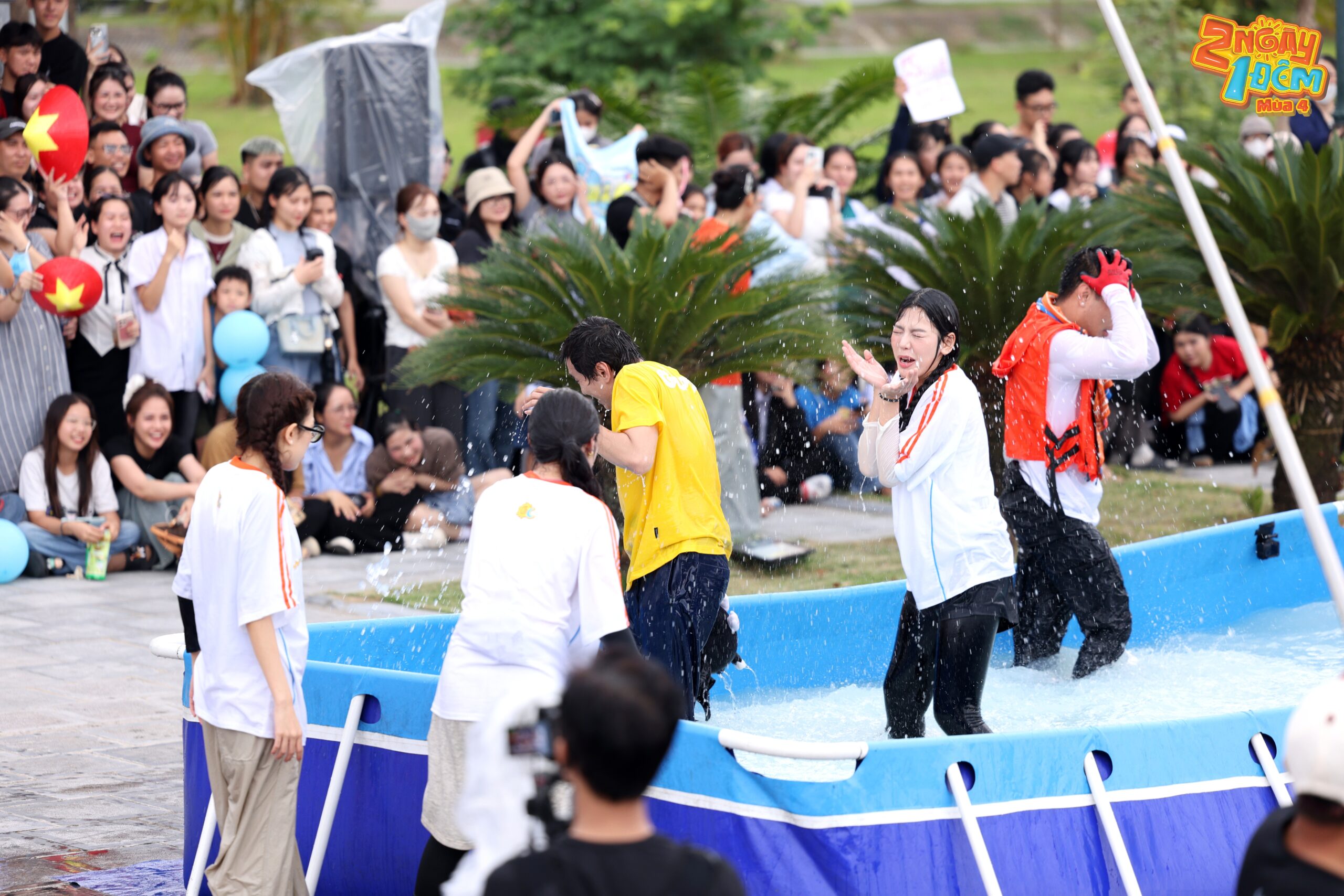 Thế nhưng, một cú twist đã xảy ra khi vô tình lực kéo của Dương Lâm tương đối mạnh va phải lực chống đỡ của HIEUTHUHAI cũng mạnh không kém gì khiến Thu Diễm trượt chân té sấp mặt xuống bể nước. Nhân cơ hội, HIEUTHUHAI phản công và chỉ với cú quơ tay nhẹ, nam rapper đã khiến Kiều Minh Tuấn té nhào xuống nước, uống no bụng.