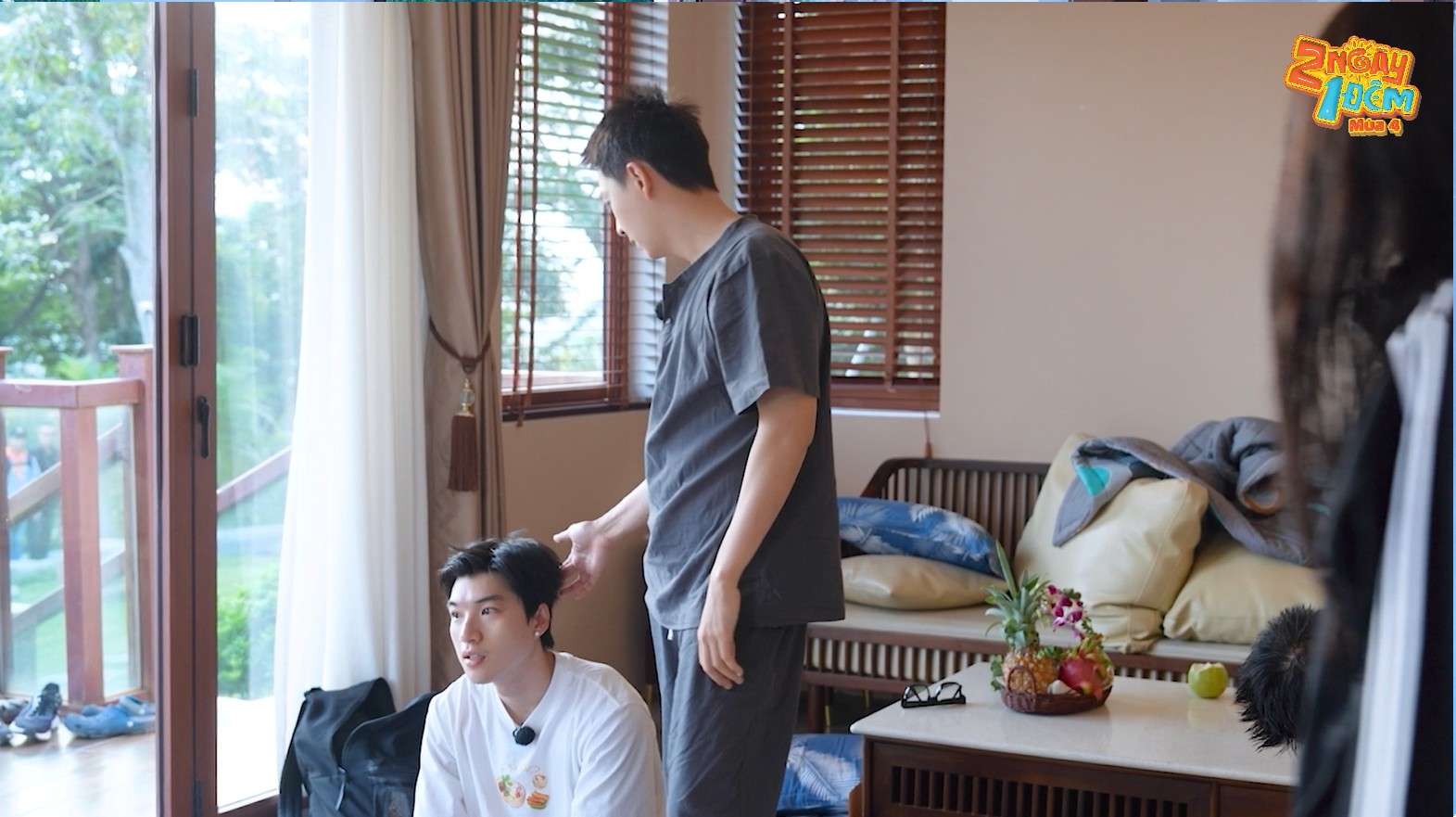 HIEUTHUHAI và Ngô Kiến Huy cùng nhớ lại trận chiến giành chỗ ngủ tối qua với những “dấu vết” còn để lại. Em út còn nũng nịu vì bị bầm mũi và bị anh Bắp trêu “Hên là mũi thật”. Đến sáng mới nhận ra mình đã chơi quá sung, cả hai cùng ôm bụng cười trước cảnh tượng tối hôm trước.