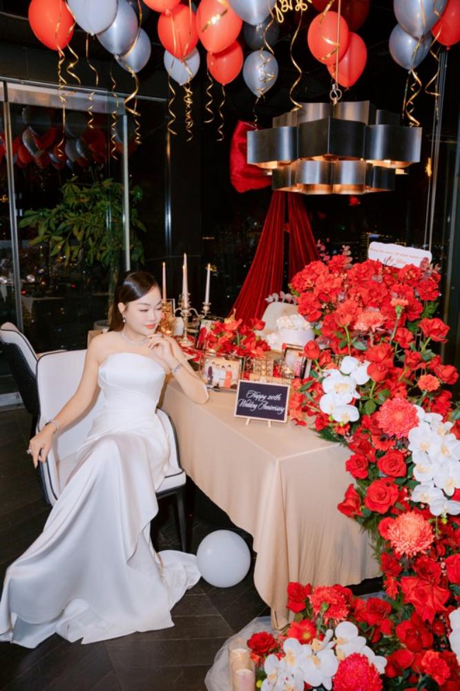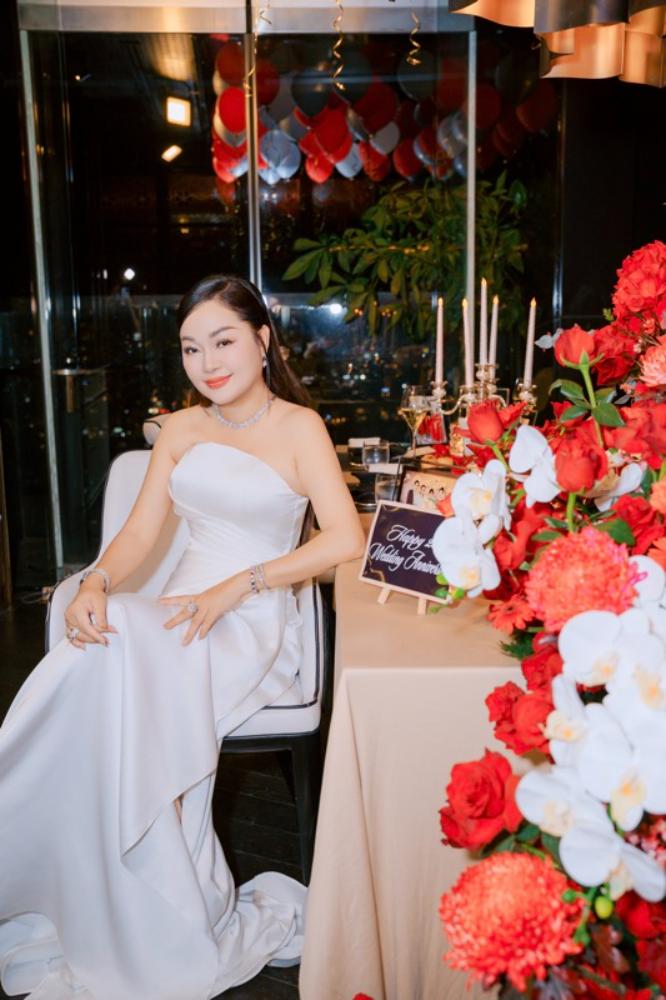 Trong buổi tối kỷ niệm, Hoa hậu Hoàng Thanh Nga diện chiếc đầm thanh lịch, tỏa sáng với vẻ đẹp đằm thắm và hạnh phúc. Sánh bước bên cô là doanh nhân Lư Hoàng Phong – người bạn đời luôn đồng hành, sẻ chia và là điểm tựa vững chắc trong cuộc sống cũng như sự nghiệp của nàng hậu.