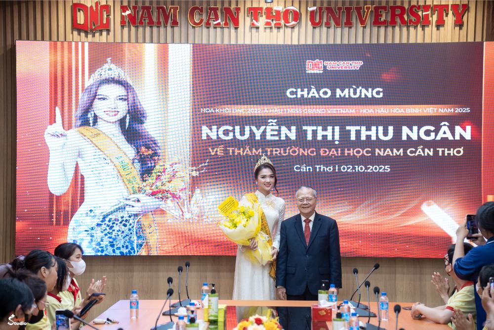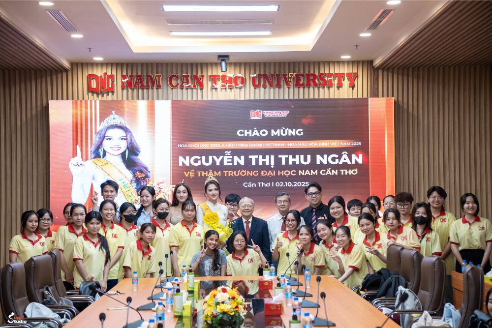 Sáng ngày 02/10/2025, Trường Đại học Nam Cần Thơ đón Á hậu 1 Hoa hậu Hòa Bình Việt Nam 2025 – Nguyễn Thị Thu Ngân, cựu sinh viên trường, đồng thời là Hoa khôi Đại học Nam Cần Thơ năm 2022.