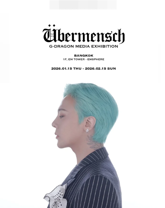 Dù chưa xác nhận tour diễn mới, G-Dragon vẫn gây chú ý khi tổ chức triển lãm “G-DRAGON MEDIA EXHIBITION : Ubermensch” tại EM Tower (EMSPHERE, Bangkok) từ 15/1 – 15/2/2026.