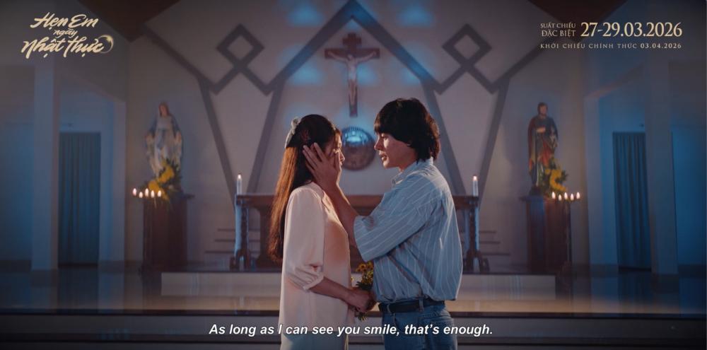 Sau những thông tin đầu tiên, Hẹn Em Ngày Nhật Thực nhanh chóng thu hút sự quan tâm của khán giả nhờ phần hình ảnh mang màu sắc hoài niệm cùng đề tài khá mới lạ: chuyện tình vào thập niên 90 giữa Ân (Thiên Ân), cô gái ngây thơ, xinh đẹp và chàng thợ điện tên Thiên (Khương Lê). Trailer vừa được công bố hé lộ thêm nhiều chi tiết về nhân vật cũng như những xung đột mà họ phải đối mặt.
