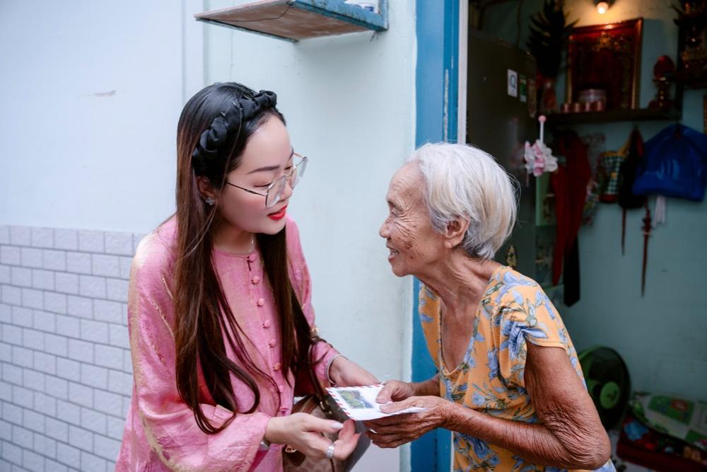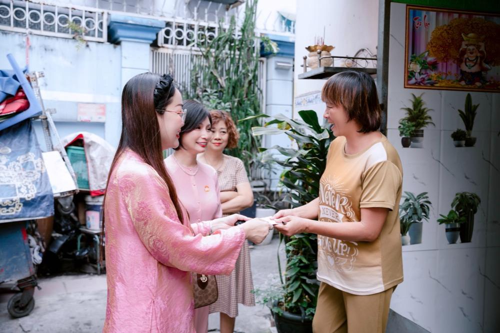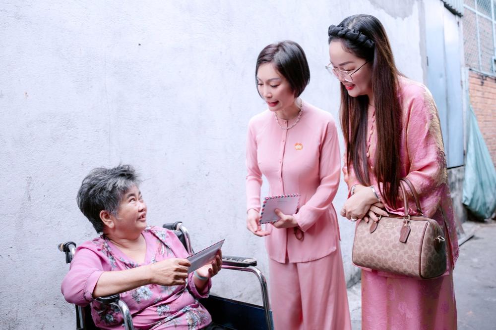 Không dừng lại ở những khoảnh khắc được vinh danh, hành trình ấy tiếp tục được nối dài bằng những việc làm rất đời, rất gần. Trong một ngày đầy ý nghĩa, Hoàng Thanh Nga đã cùng chị Ngọc – đại diện MTTQ phường Hòa Hưng, trực tiếp trao gửi những phần quà ấm áp đến bà con có hoàn cảnh khó khăn trên địa bàn phường. Những món quà mang theo sự quan tâm của Giáo hội Phật giáo Việt Nam và Phu nhân Nguyên Chủ tịch nước Trương Tấn Sang, không chỉ hỗ trợ về vật chất mà còn là lời động viên tinh thần chân thành, ấm áp giữa đời thường.