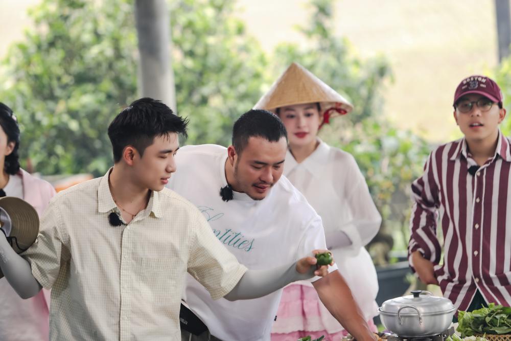 Ngay sau đó, cả nhà di chuyển sang gia đình thím Tư, thím Bảy để cùng ăn tiệc trưa với loạt món ăn đặc sản như lẩu mắm, bánh xèo, mắm cá… Đối với nhiều gương mặt, đây cũng là lần đầu tiên họ được thưởng thức những món ăn tuy dân giả nhưng lại rất đặc trưng, đa số đều phải liên tục tấp tất khen ngợi bởi hương vị đáng nhớ này.