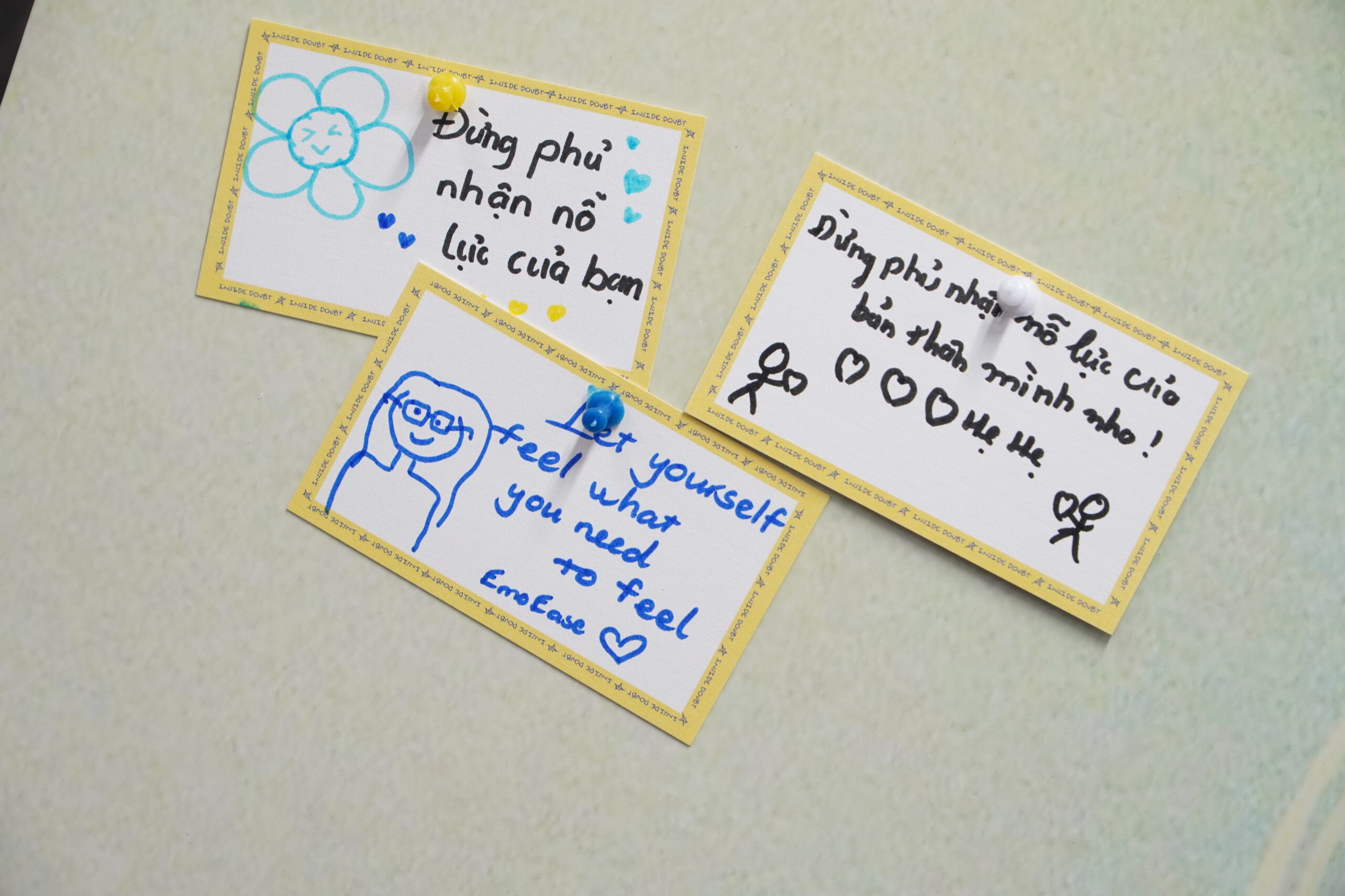 Bên cạnh phần chia sẻ lý thuyết, workshop thực hành mang đến nhiều hoạt động mang tính trị liệu như viết postcard khẳng định bản thân, thư giãn với túi thơm thảo mộc… giúp người trẻ trải nghiệm các kỹ thuật củng cố sự tự tin và giải tỏa căng thẳng ngay tại chỗ.