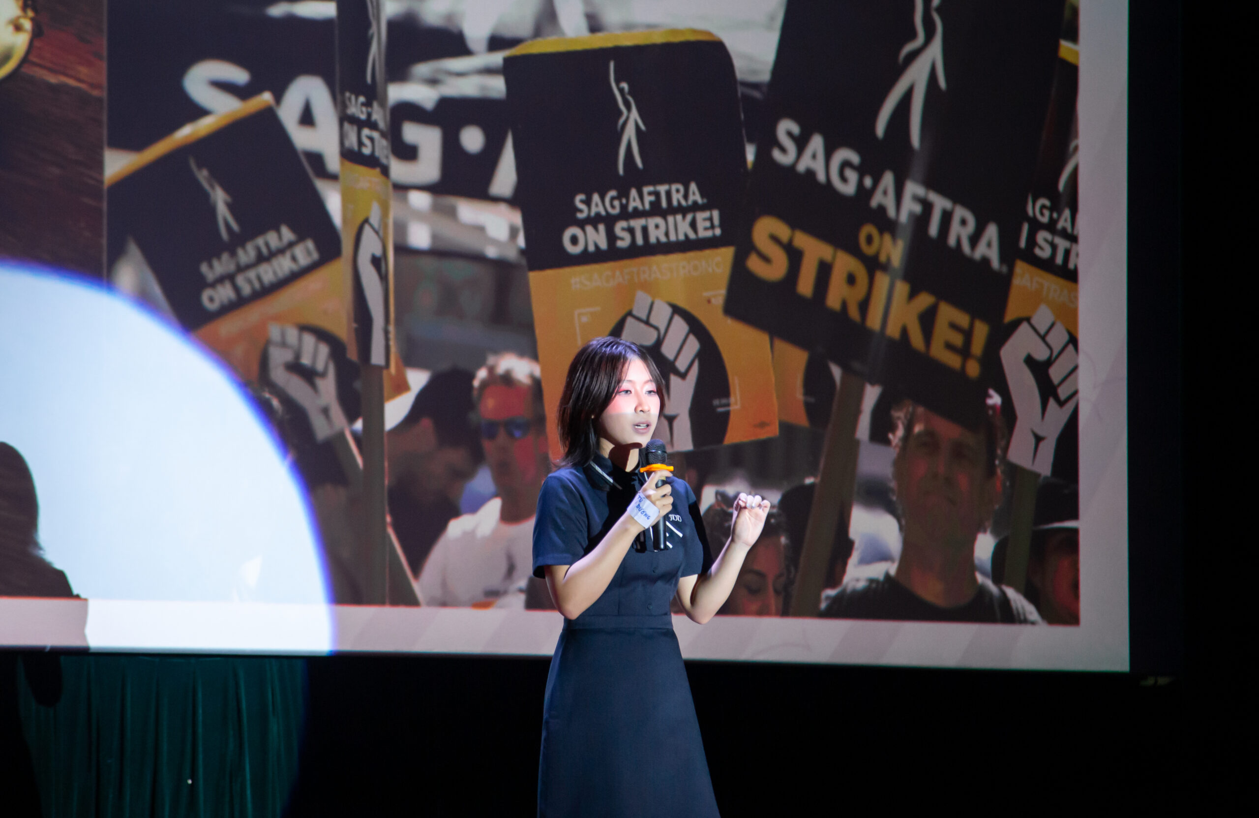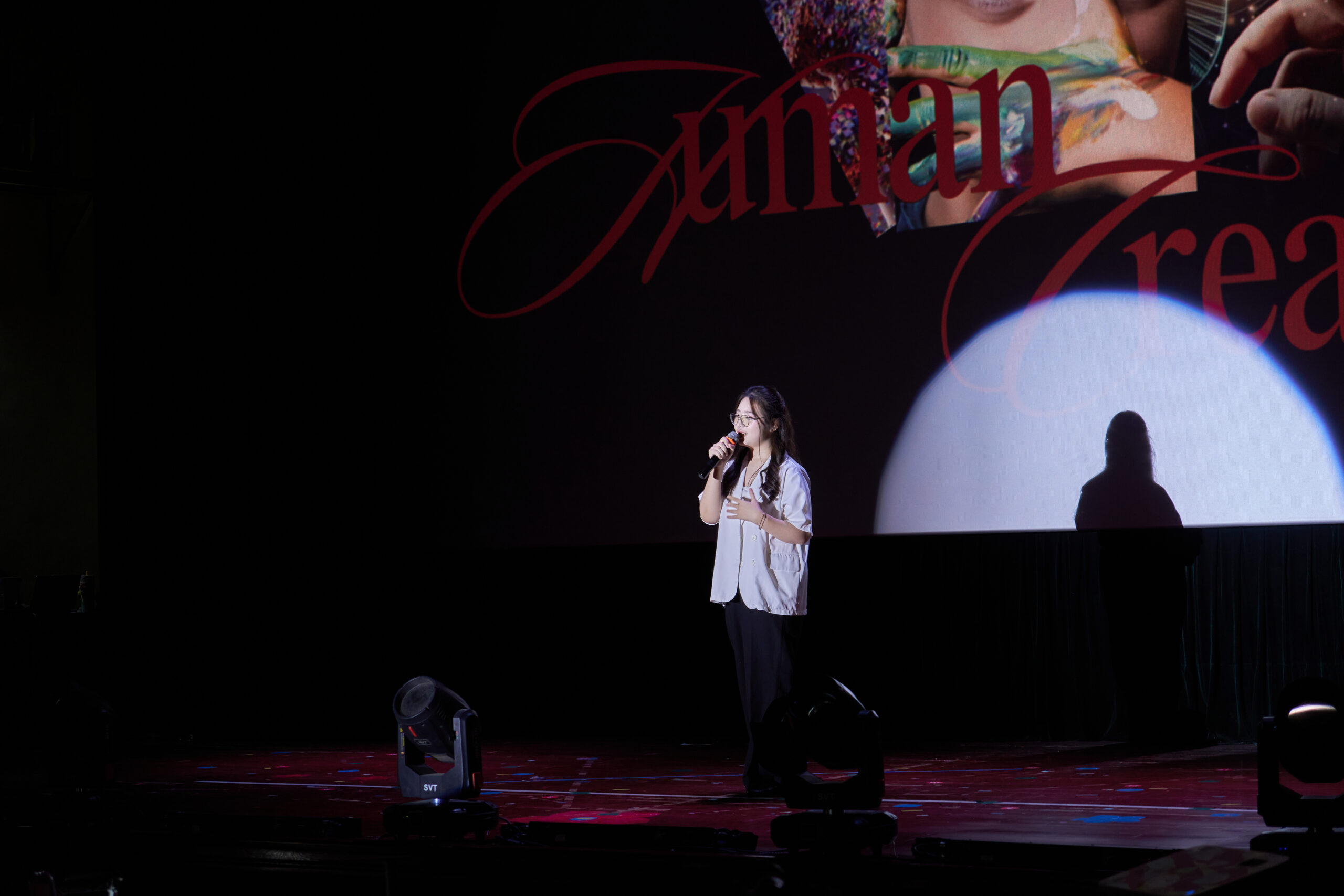Thí sinh Nguyễn Thu Phương THE E-FACE 2025 thể hiện phần thi “Hùng biện – AQUILA’S VOICES”
