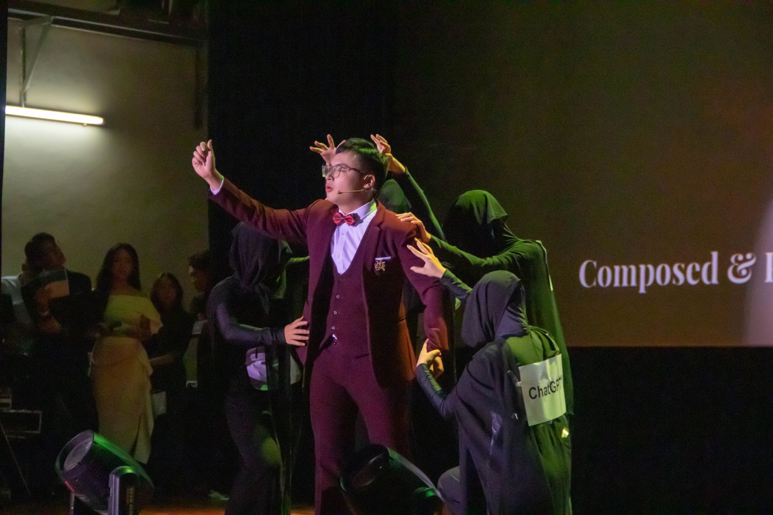 Thí sinh Bùi Tú Dương THE E-FACE 2025 thể hiện phần thi “Hùng biện – AQUILA’S VOICES”
