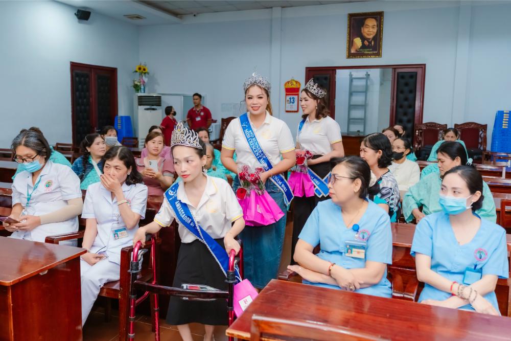 Dàn Hoa, á hậu và Đại sứ Hoa hậu Trăng khuyết Việt Nam mang yêu thương đến Bệnh viện Chấn thương Chỉnh hình TP.HCM.