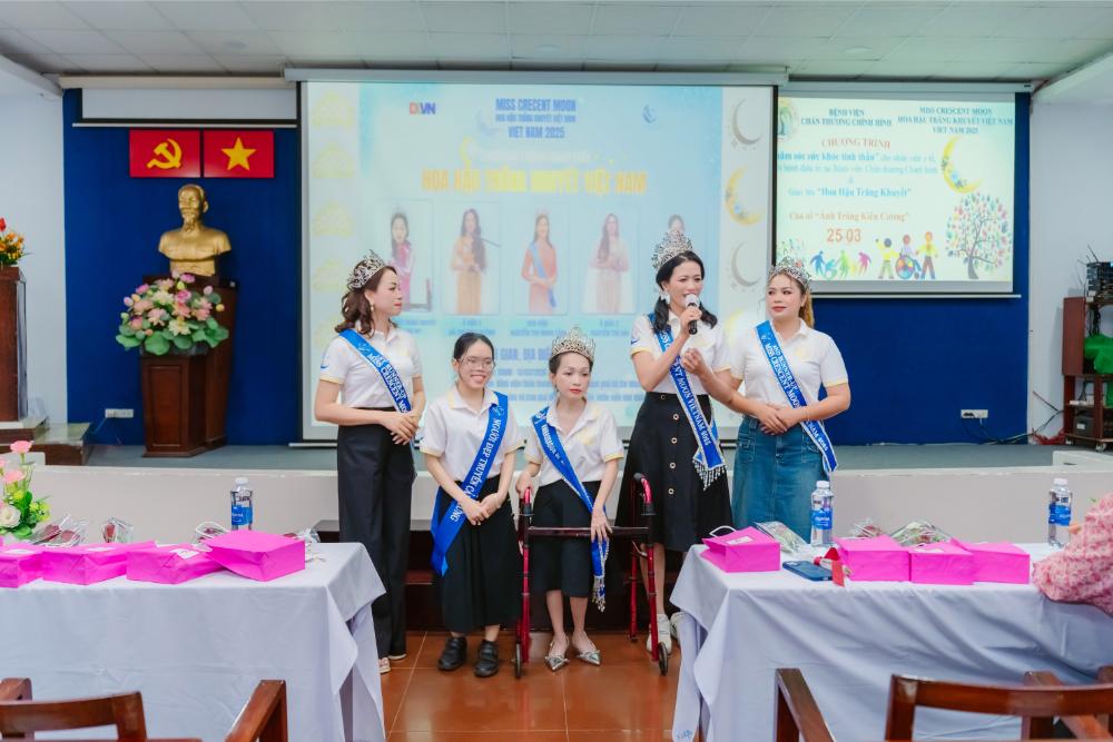 Vừa qua, chương trình thiện nguyện tập thể đầu tiên của dàn thí sinh sau đăng quang đến từ cuộc thi Hoa hậu Trăng khuyết Việt Nam đã tổ chức tại Bệnh viện Chấn thương Chỉnh hình TP.HCM.