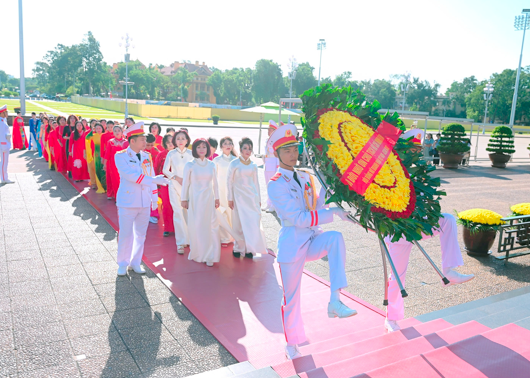 Theo đúng nghi thức long trọng, Lễ báo công của hơn 300 đại diện tiêu biểu của phụ nữ Việt Nam được xem là khoảnh khắc hội tụ của những tâm hồn lớn – những nữ trí thức uyên bác, nghệ sĩ tài hoa và nữ doanh nhân bản lĩnh. Họ đến đây để không chỉ dâng lên Bác Hồ những thành tựu của mình, mà còn mang theo khát vọng, niềm tin và tình yêu sâu đậm dành cho đất nước.