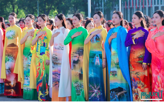 Sau phần lễ, đến phần hội có tâm điểm là phần trình diễn thời trang độc đáo: 34 chiếc áo dài được sắp xếp và thiết kế như 34 “chứng nhân” văn hoá kể lại nét đẹp của 34 tỉnh, thành sau ngày đất nước sáp nhập. Mỗi tà áo mỗi vẻ – là mỗi mảng màu của đất, của người, của từng địa phương, là mỗi nhịp đập của tinh thần đoàn kết dân tộc. Bằng cách để thời trang trở thành ngôn ngữ kể chuyện, Khôi đã kiến tạo một bản giao hưởng thị giác, nơi quá khứ và hiện tại giao thoa trong từng đường kim mũi chỉ. Đây cũng là lời chào đầy ý nghĩa của chàng trai trẻ giàu lòng yêu nước, chan chứa tinh thần cống hiến gửi tới Đại hội Đảng toàn quốc lần thứ 14 – dấu mốc mở ra một giai đoạn phát triển mới của đất nước.