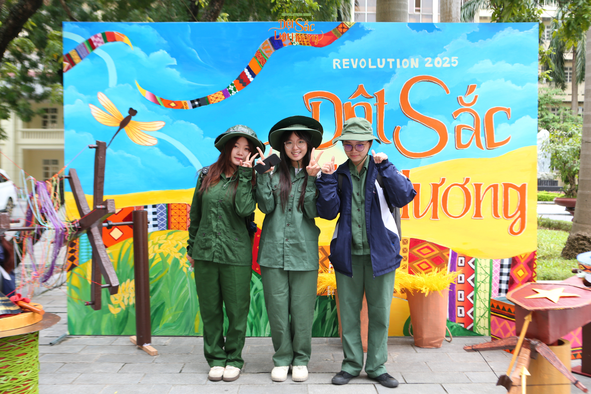 Cảm nhận về hoạt động này, bạn Nguyễn Văn Đại – sinh viên lớp Lịch sử Đảng K45 chia sẻ: “Em cảm thấy rất vui và hào hứng khi được tham gia các hoạt động trong khuôn khổ Revolution 2025. Đặc biệt, khi đến với photobooth ‘Thanh Âm Sắc Cẩm’, em như được hòa mình vào không gian đầy sắc màu và đậm nét truyền thống, từ cách bày trí cho tới những đạo cụ check-in thú vị.” Đại cho biết thêm, những hoạt động như vậy giúp sinh viên có thêm cơ hội trải nghiệm, hiểu hơn về giá trị văn hóa dân tộc qua góc nhìn trẻ trung và sáng tạo.