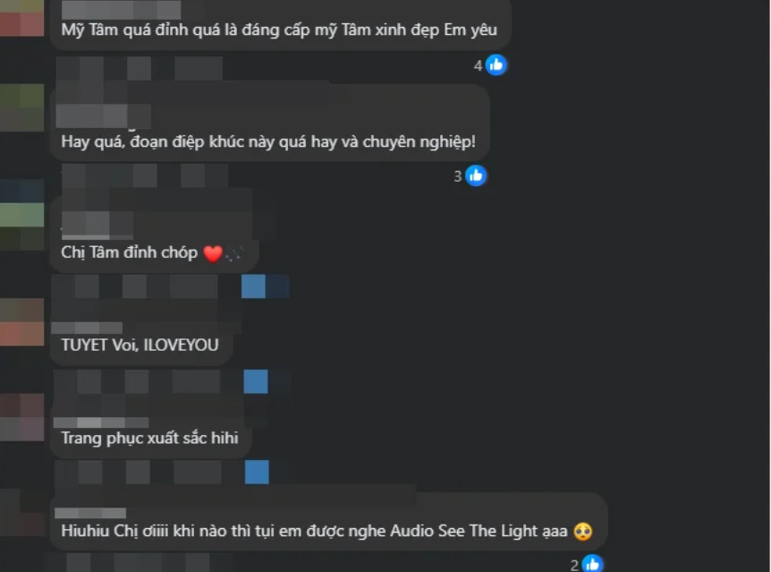 Trên fanpage hơn 5 triệu người theo dõi, Mỹ Tâm mới đây đã khiến cộng đồng người hâm mộ “đứng ngồi không yên” khi đăng tải đoạn clip fancam ghi lại màn trình diễn ca khúc See The Light trong đêm đại nhạc hội diễn ra tại TP.HCM ít ngày trước. Dù chỉ vỏn vẹn khoảng 30 giây, đoạn video nhanh chóng lan truyền trên mạng xã hội, trở thành tâm điểm bàn luận của đông đảo khán giả yêu nhạc.