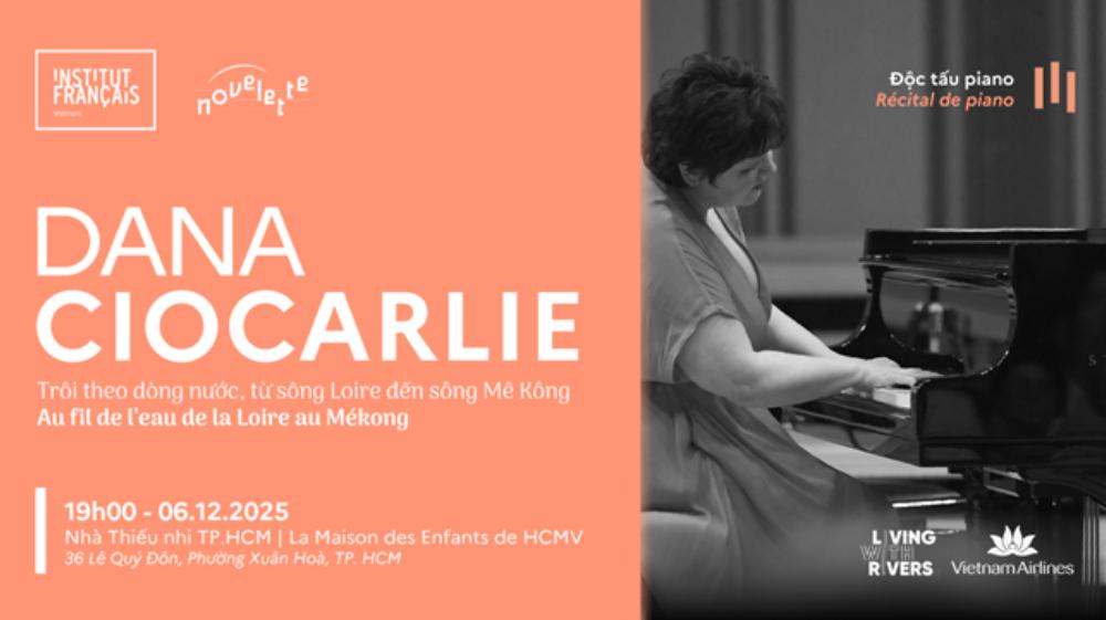 Vào lúc 19 giờ, ngày 6/12/2025, tại Nhà Thiếu nhi Tp. Hồ Chí Minh – 36 Lê Quý Đôn, P. Xuân Hòa, TP. HCM Nghệ sĩ dương cầm người Pháp tài năng Dana Ciocarlie – gương mặt quen thuộc trên nhiều sân khấu quốc tế sẽ có buổi giới thiệu dự án mới “Trôi theo dòng nước – từ sông Loire đến sông Mê Kông”, một chương trình âm nhạc cùng một số hoạt động giảng dạy chuyên sâu với tinh thần sẻ chia, khám phá và kết nối giữa Pháp và Việt Nam.