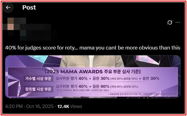 Động thái này lập tức dấy lên những lo ngại về tính minh bạch và công bằng của giải thưởng. Nhiều fan bày tỏ rằng gần một nửa tổng điểm do ban giám khảo quyết định có thể tạo ra lợi thế cho một số nghệ sĩ nhất định, đồng thời làm giảm ảnh hưởng của cộng đồng người hâm mộ vốn từ lâu là yếu tố quan trọng trong việc xác định người chiến thắng tại MAMA. Một fan trên Twitter nhận định: “Mẹ ơi, tăng điểm của ban giám khảo từ 20% lên 40%, chúng ta sắp chứng kiến một vụ cướp giải cấp độ tiếp theo”.