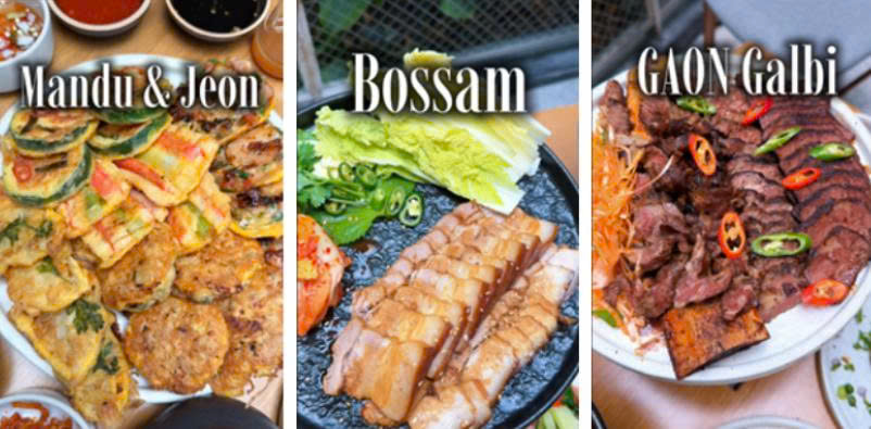 Nổi bật nhất là GAON Galbi, sườn bò thượng hạng hầm 24 giờ trong nước tương cổ truyền rồi nướng than hoa, thịt mềm đến mức nghiêng đũa là tách, lan tỏa hương khói nhẹ và vị ngọt tự nhiên tinh tế. Bossam lại gợi cảm giác ấm áp của bữa cơm gia đình: thịt ba chỉ hầm chậm trong mother-stock được nuôi dưỡng mỗi ngày, ăn kèm kimchi củ cải lên men đúng 7 ngày tạo nên bản hòa vị hài hòa giữa béo, chua và cay.