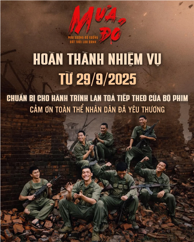 Ngày 29/9, “Mưa đỏ” chính thức khép lại hành trình chiếu rạp đầy ấn tượng, để lại dấu ấn mạnh mẽ trong lòng công chúng yêu điện ảnh Việt Nam. Không chỉ là một tác phẩm điện ảnh quy mô lớn về đề tài chiến tranh, Mưa đỏ còn là một bước tiến táo bạo và đầy cảm xúc trong việc “kể” lịch sử thông qua ngôn ngữ nghệ thuật hiện đại và giàu tính nhân văn.