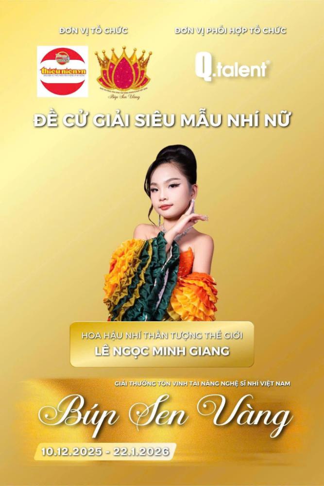 Đặc biệt, hiện Lê Ngọc Minh Giang đang được đề cử Giải thưởng “Búp Sen Vàng” do Báo Thiếu niên Tiền phong và Nhi đồng tổ chức- Một sự ghi nhận ý nghĩa dành cho những đóng góp nổi bật và bền bỉ của em trong các lĩnh vực nghệ thuật, văn hóa cũng như hoạt động cộng đồng trong năm 2025. Đề cử này không chỉ khẳng định hành trình nỗ lực nghiêm túc của Minh Giang, mà còn tôn vinh hình ảnh một tài năng trẻ tiêu biểu, giàu bản lĩnh và trách nhiệm xã hội.