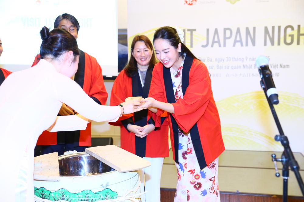 Tối 30/9, đương kim Miss International – Huỳnh Thị Thanh Thủy vinh dự tham gia sự kiện giao lưu văn hóa đặc biệt “Visit Japan Night” do Đại sứ quán Nhật Bản tại Việt Nam phối hợp cùng Cơ quan Xúc tiến Du lịch Nhật Bản (JNTO) tổ chức.