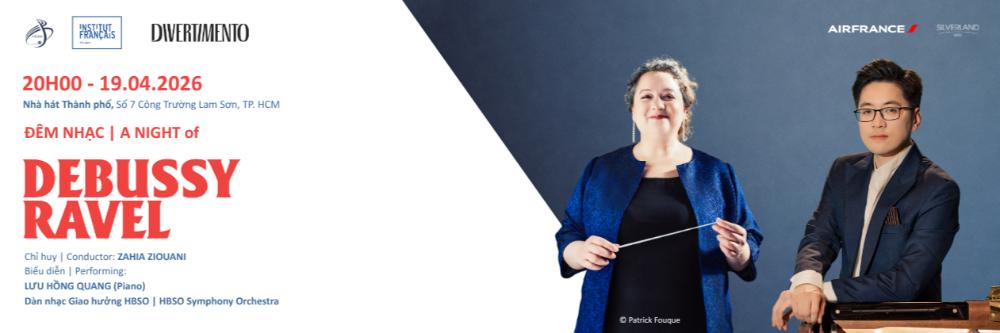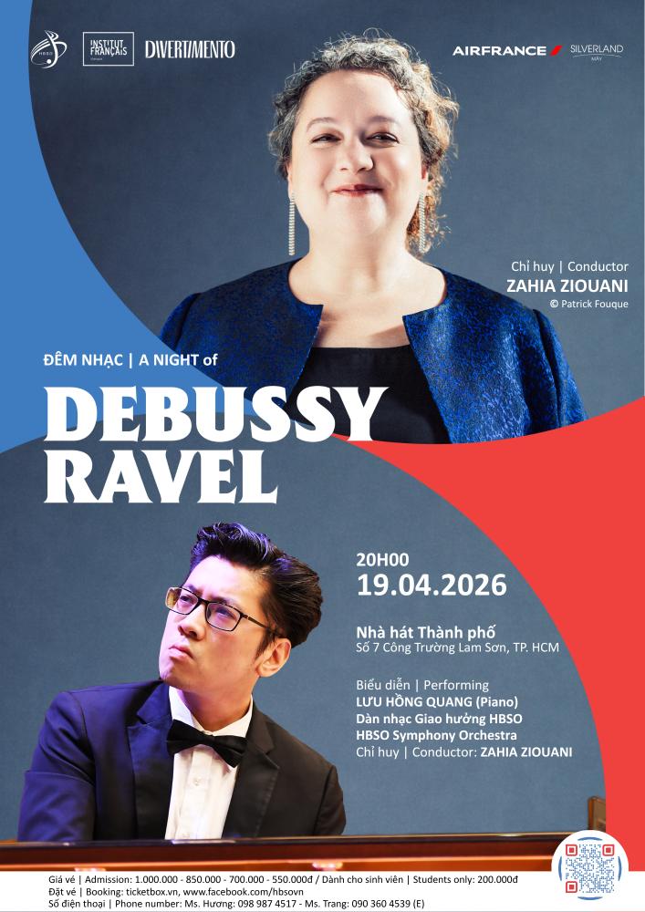 Dàn nhạc Giao hưởng TP.HCM (HBSO) và Viện Pháp tại Việt Nam hân hạnh giới thiệu buổi hòa nhạc của nữ nhạc trưởng người Pháp Zahia Ziouani, cùng nghệ sĩ Piano Lưu Hồng Quang và Dàn nhạc Giao hưởng và Vũ kịch TP HCM (HBSO).