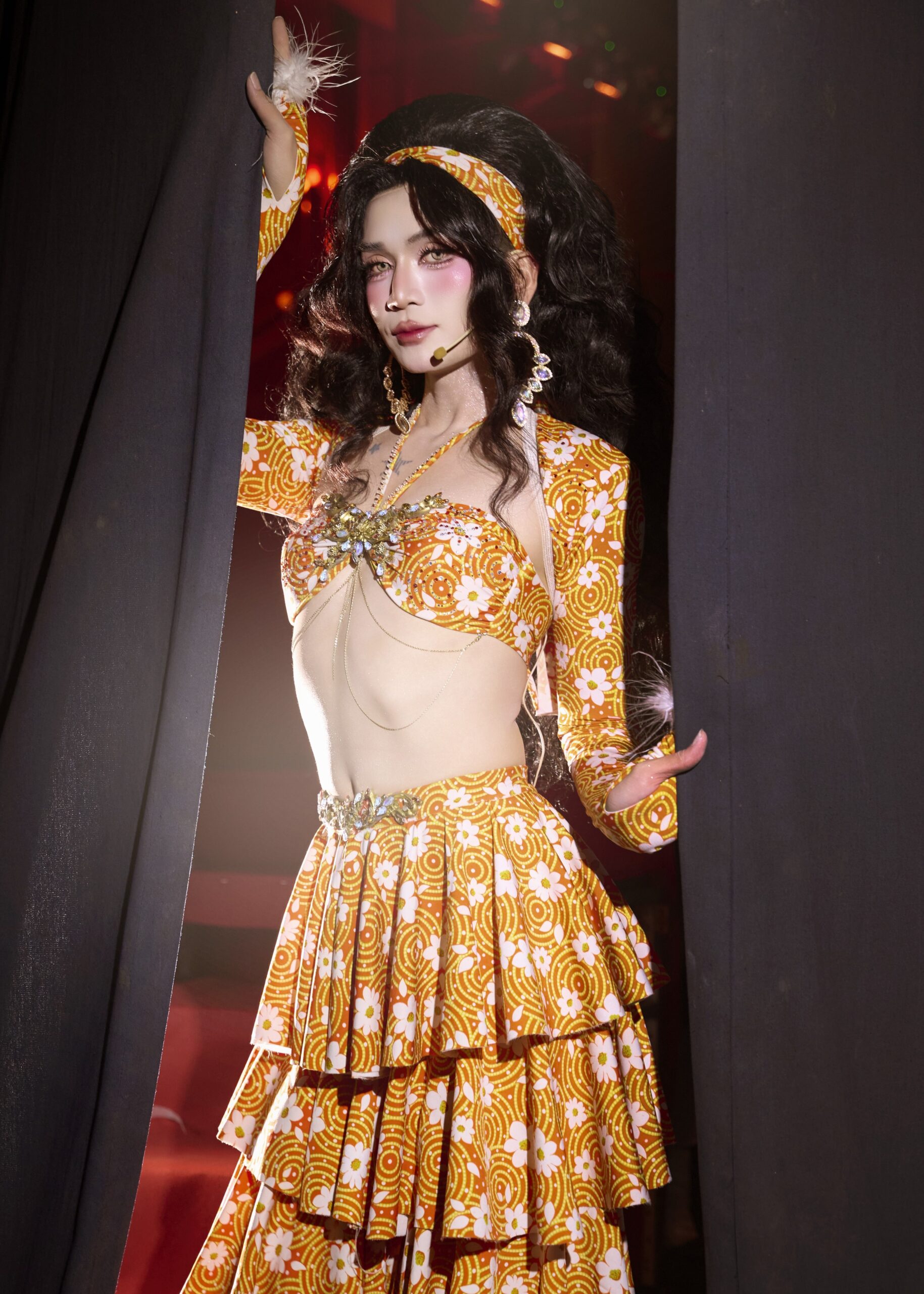 Diễn viên Ngọc Phước ấn tượng với thiết kế đầu tư công phu từ vải thun – Ảnh: NVCC