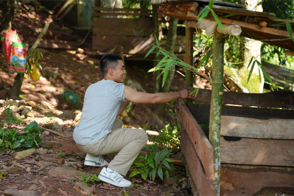 Nam ca sĩ còn chủ động giúp người dân những công việc đời thường như cho lợn ăn, vác đồ, dọn dẹp. Dù chỉ là những hành động nhỏ nhưng giúp anh hòa nhập tự nhiên, khiến vai diễn thêm chân thực.