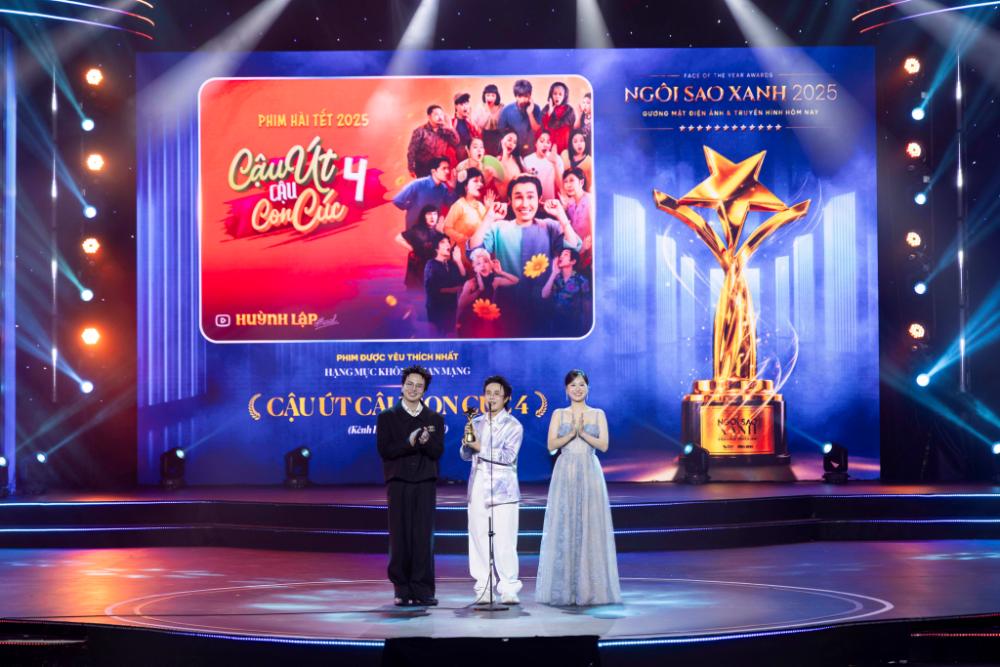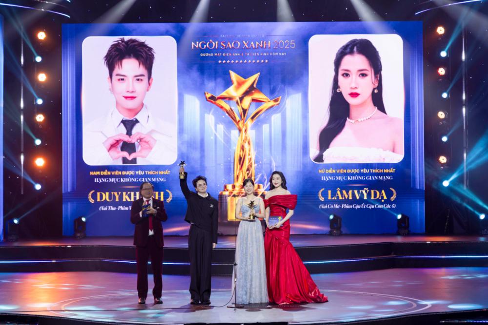 Đường đua bình chọn dành cho nội dung trực tuyến và âm nhạc cũng ghi nhận những con số kỷ lục. Giải Nam diễn viên được yêu thích nhất gọi tên Duy Khánh với vai Thu trong series Về Quê Có Gì Vui đã bứt phá ngoạn mục, giành chiến thắng với 1.962.370 lượt bình chọn, khẳng định vị thế “ngôi sao quốc dân” được đông đảo khán giả yêu mến. Trong khi đó, Lâm Vỹ Dạ cũng khiến fan vỡ òa khi được xướng tên tại giải Nữ diễn viên được yêu thích nhất với vai Cô Mơ trong Cậu Út Cậu Con Cúc 4, nhận về 918.305 lượt vote, cho thấy sức hút bền bỉ của nữ diễn viên trên cả sân khấu lẫn không gian mạng. Phim được yêu thích nhất đã thuộc về Cậu Út cậu Con Cúc 4 với 1.006.215 lượt bình chọn, trở thành một trong tác phẩm Không gian mạng nổi bật nhất năm qua.
