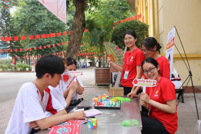 Các tình nguyện viên TNT tươi tắn khi phục vụ hiến máu