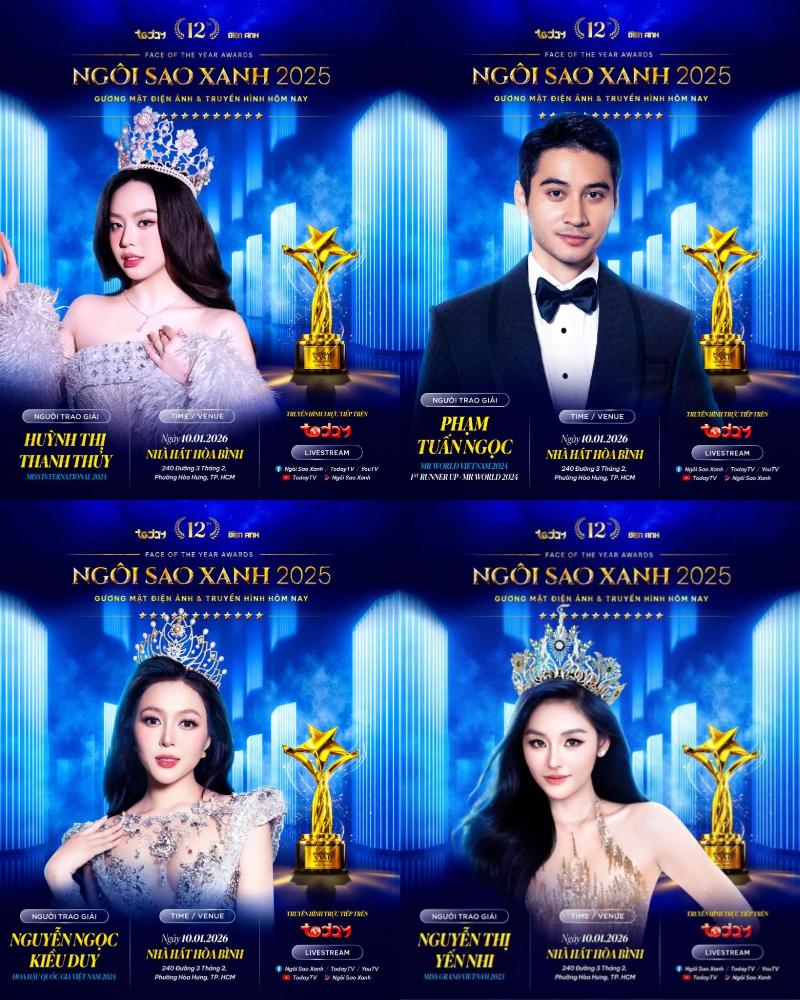 Chỉ còn ít ngày nữa, khán giả sẽ được trực tiếp chứng kiến những khoảnh khắc vinh danh tại đêm gala trao giải Ngôi Sao Xanh 2025, diễn ra vào 20:00 ngày 10/01/2026 tại Nhà hát Hòa Bình (TP.HCM). Đêm trao giải năm nay quy tụ dàn nghệ sĩ gạo cội đảm nhận vai trò trao cúp như: PGS.TS Đỗ Lệnh Hùng Tú, NSND Kim Xuân, NSƯT – Đạo diễn Lê Hoàng, NSND – Đạo diễn Đào Bá Sơn, Đạo diễn Kawaii Tuấn Anh,…