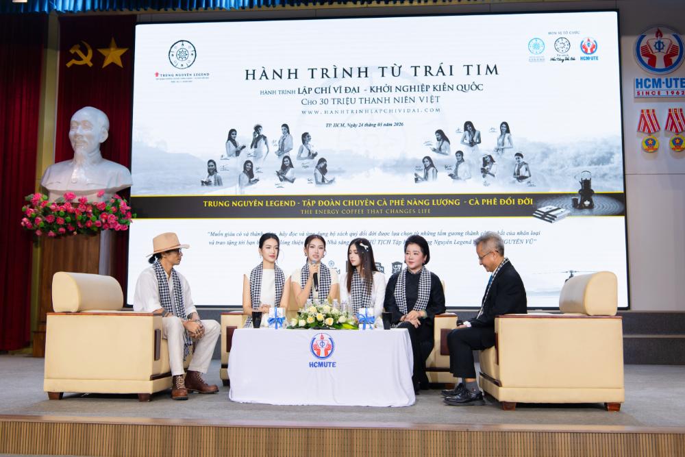 Ngày 24/3/2026, Tập đoàn Trung Nguyên Legend tiếp tục triển khai “Hành trình Từ Trái Tim – Hành trình Lập chí Vĩ đại – Khởi nghiệp Kiến quốc cho 30 triệu thanh niên Việt” khởi đầu tại TP.HCM tại Trường Đại học Công nghệ Kỹ thuật TP.HCM và Trường Đại học Công Thương TP.HCM.
