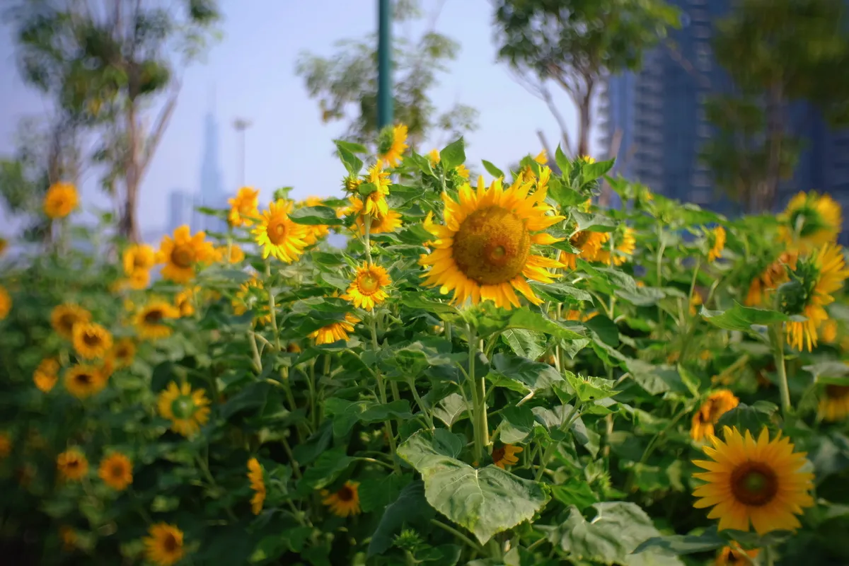 Vườn hoa này nhìn từ trên cao như một “dải lụa vàng” mềm mại trải dọc bờ sông. Những bông hướng dương to bản, đồng loạt hướng về phía mặt trời không chỉ tạo nên cảnh sắc đẹp mắt mà còn mang ý nghĩa biểu tượng cho niềm tin, sự lạc quan và hy vọng vào một năm mới khởi sắc.