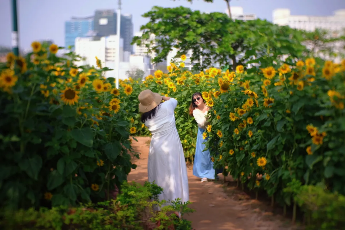 Vườn hoa khu vực ga Ba Son và khu vườn hoa hướng dương bên bờ sông Thủ Thiêm đang là tâm điểm thu hút những ngày đầu năm mới 2026.
