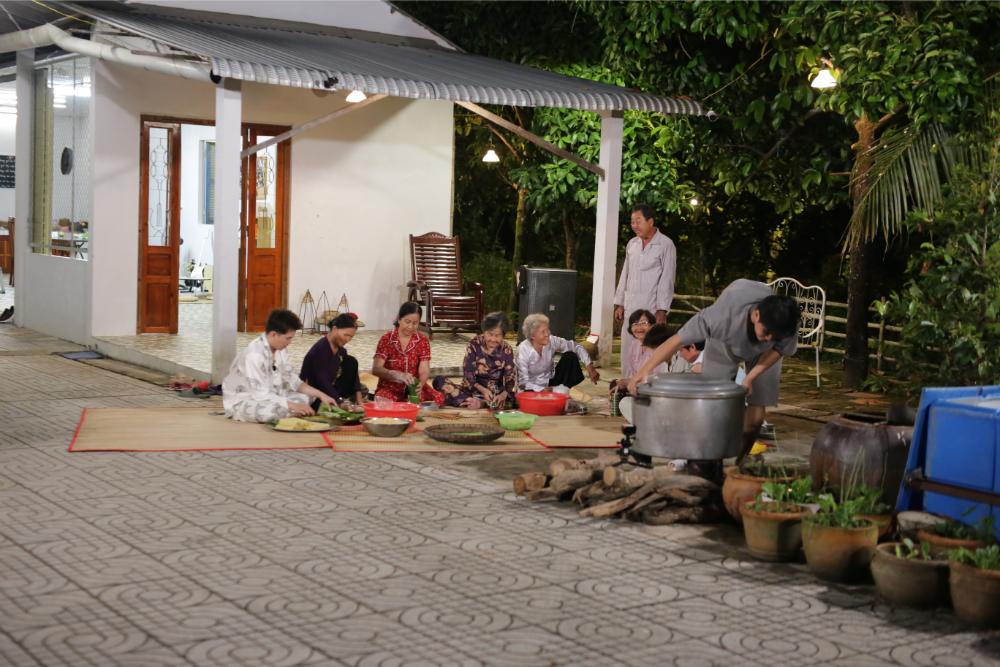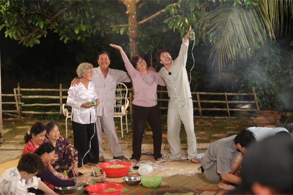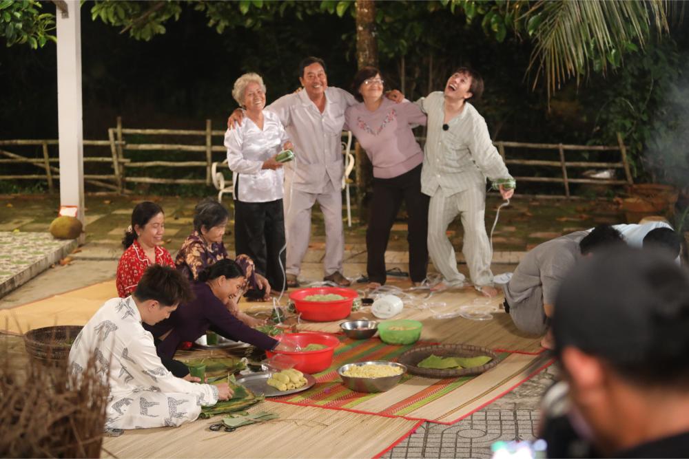 Khi mọi người quay lại nhà chung, bàn ăn có sẵn 4 bát bánh canh từ một người anh bí ẩn gửi tặng, lại có thêm 3 khách nhí là các em nhỏ trong xóm ghé thăm nhà. Các bạn nhỏ hoạt ngôn, không ngại bày tỏ mình là fan chú Quang Hùng Master D, lại nấn ná chơi mãi không chịu về, tạo điểm nhấn đáng yêu. Đúng như dự đoán của Huy Khánh khi thấy món bánh canh, nghệ sĩ Kim Tử Long xuất hiện khiến anh “bật chế độ cảnh giác” trong khi những “chiếu mới” vẫn ngây thơ tin những lời khẳng định chắc nịch của tiền bối. Huy Khánh nhanh chóng vạch trần quá khứ không kém Lê Nam ở mùa trước của Kim Tử Long. Sau bữa ăn, cả nhóm y hẹn cùng gia đình chú Bảy gói bánh Tét. Khung cảnh cả gia đình quây quần, bà con hàng xóm kéo đến xem đầy ấm áp. Kim Tử Long thể hiện khả năng ứng biến của nghệ sĩ gạo cội, vừa giao lưu với bà con, vừa ngẫu hứng hát về chương trình, biến câu đối đáp bình thường thành khúc ca cổ thú vị khiến mọi người vỗ tay không ngớt. Anh cũng không quên hẹn mọi người mua hàng ở hội xuân ngày mai.