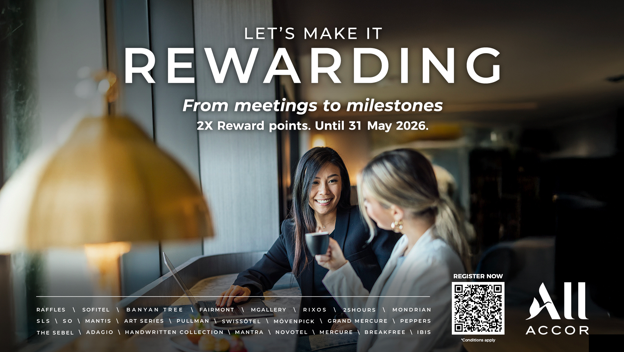 - Ưu đãi: Nhân đôi điểm thưởng (2X Reward Points) dành cho hội viên ALL – Accor Live Limitless và các đơn vị tổ chức sự kiện. Đây là cơ hội tuyệt vời để tích lũy điểm thưởng và đổi lấy những trải nghiệm nghỉ dưỡng đẳng cấp trong hệ thống Accor toàn cầu.