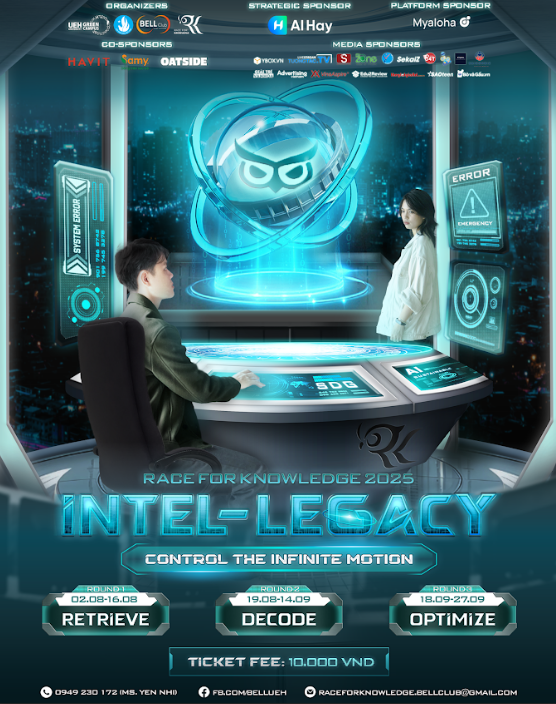 Cuộc thi học thuật tiếng Anh Race for Knowledge 2025 | Intel-Legacy: Control the Infinite Motion chính thức phát động, mang đến sân chơi trí tuệ cho sinh viên với chủ đề xoay quanh tầm quan trọng của Trí tuệ nhân tạo (AI) trong chiến lược phát triển bền vững.