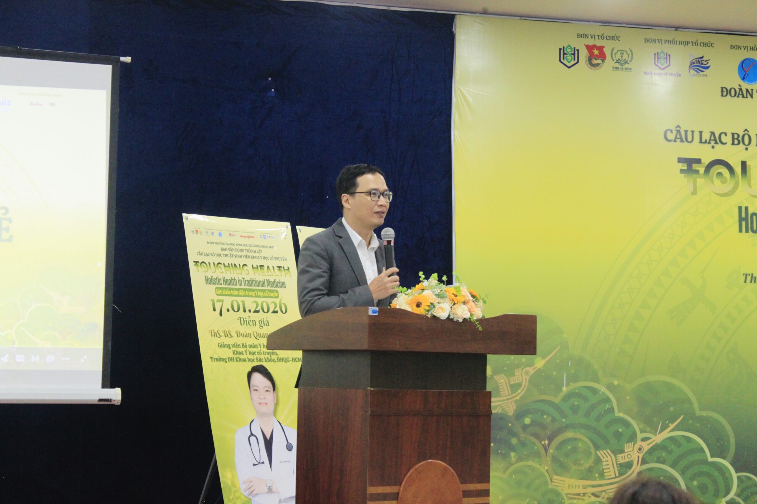 Sáng ngày 17/01/2026, tại Hội trường Nhà Văn hóa Sinh viên TP. Hồ Chí Minh, Talkshow “Touching Health – Sức khỏe toàn diện trong Y học cổ truyền” đã diễn ra thành công tốt đẹp, thu hút sự quan tâm của gần 400 sinh viên đến từ hơn 20 trường đại học trên địa bàn TP. Hồ Chí Minh, cùng đông đảo quý lãnh đạo, giảng viên và khách mời. Con số ấn tượng này cho thấy sức hút mạnh mẽ của chương trình cũng như nhu cầu ngày càng lớn của sinh viên đối với các hoạt động chăm sóc sức khỏe chủ động, khoa học và bền vững.