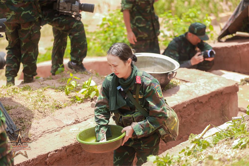 Sau hành quân, các chiến sĩ tiếp tục bước vào nhiệm vụ chuẩn bị bữa trưa cho gần 30 người bằng điều kiện tối giản của bếp dã chiến. Dưới cái nắng đỉnh điểm, khói bếp quyện cùng mùi măng rừng, củi lửa khiến ai nấy đều thấm mệt, nhưng không ai rời vị trí. Huỳnh Anh – bếp trưởng và các phụ bếp thay nhau thái rau, rửa nguyên liệu, nấu canh, rán trứng; có chiến sĩ ngộp thở vì khói, có người hoa mắt vì trời nóng, nhưng tất cả đều phối hợp nhịp nhàng như một tập thể đã gắn bó từ lâu.