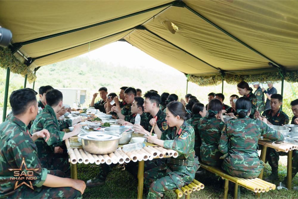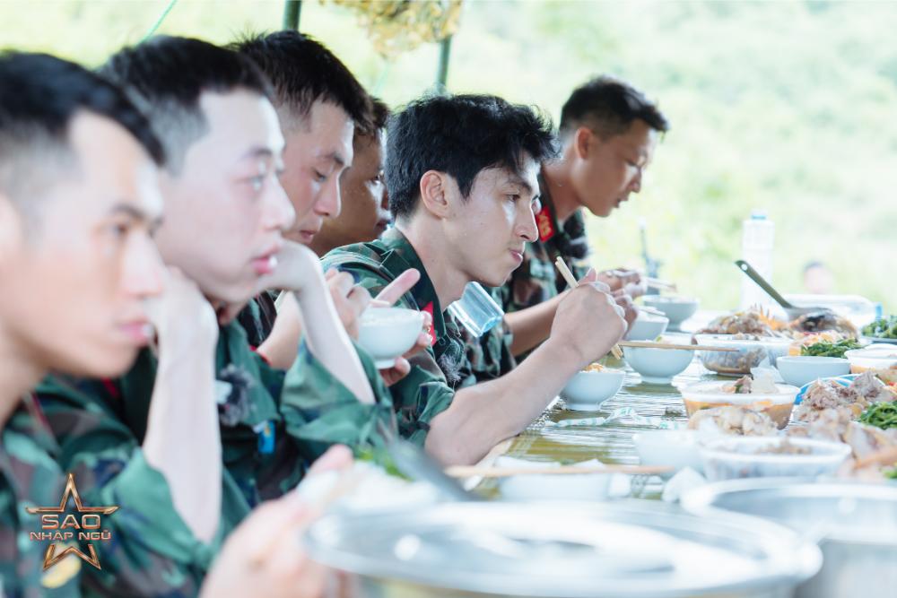 Bữa cơm cuối cùng của hành quân không phải là bữa ăn đủ đầy hay đẹp mắt nhất, nhưng lại chứa đựng tinh thần đoàn kết mạnh mẽ nhất của trung đội. Những chiếc nồi còn vương khói, mẻ rau còn sót chút sâu, miếng cá được chia nhỏ để đủ phần cho tất cả… tất cả kết lại thành một bữa cơm đầy ấm áp. Double 2T bồi hồi: “Bữa cơm này có lẽ không phải là một bữa cơm ngon nhất nhưng là một bữa cơm đáng nhớ nhất vì nó thể hiện sự đoàn kết của tất cả đồng đội.” Khi ngồi xuống bên nhau sau chuỗi giờ dài vất vả, ai cũng cảm nhận rõ hương vị của sự nỗ lực, sẻ chia và tình đồng đội – thứ tạo nên giá trị đẹp nhất của Sao Nhập Ngũ.