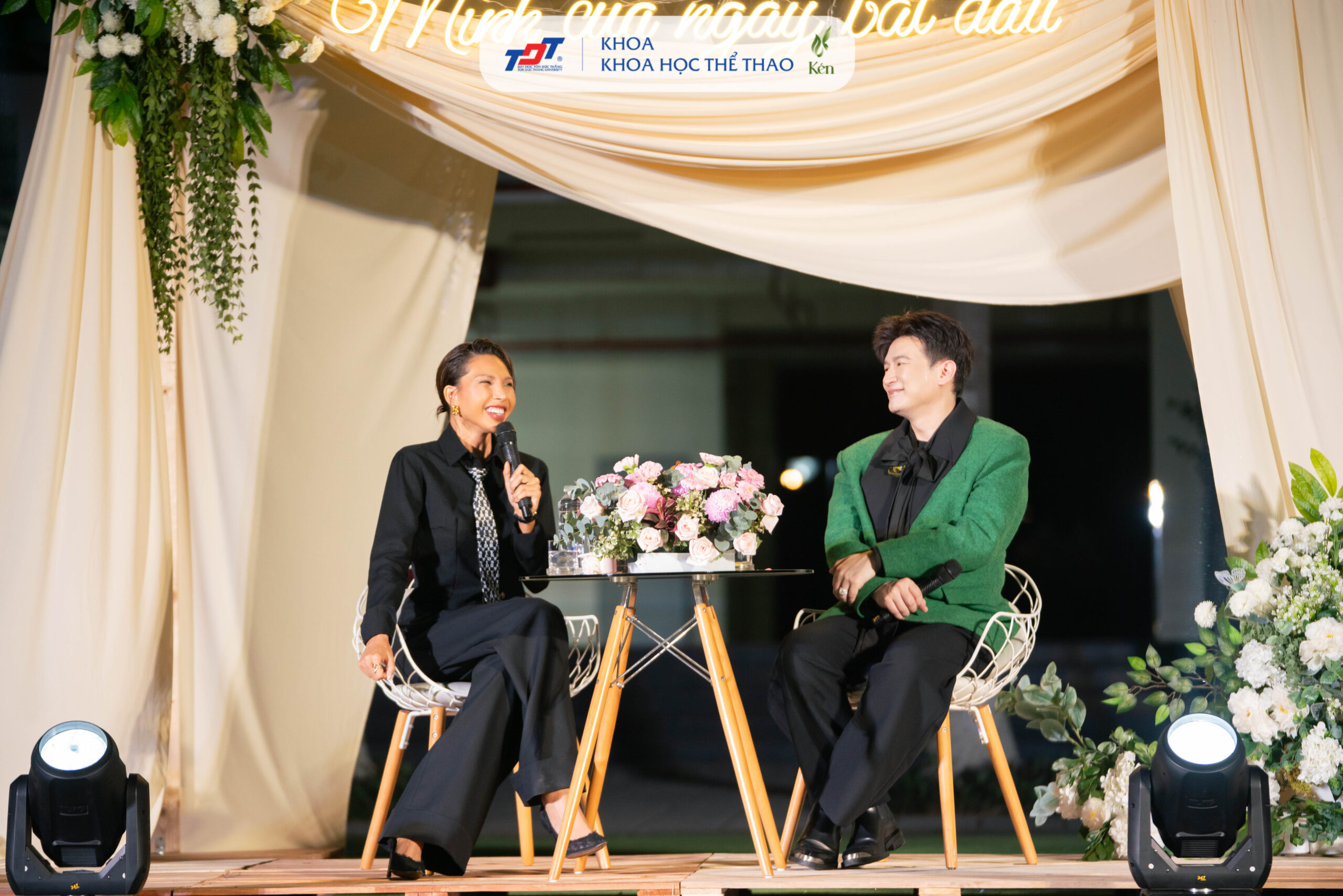 Thú vị hơn khi trong phần giao lưu, 3 nghệ sĩ liên tục đọ trình ‘bắn ngoại ngữ’ chào fan bằng nhiều thứ tiếng từ Pháp, Ý, Trung Quốc, Lào, Thái Lan, Campuchia,… đem đến một đêm kết nối cộng đồng sinh viên tràn đầy năng lượng và ý nghĩa.