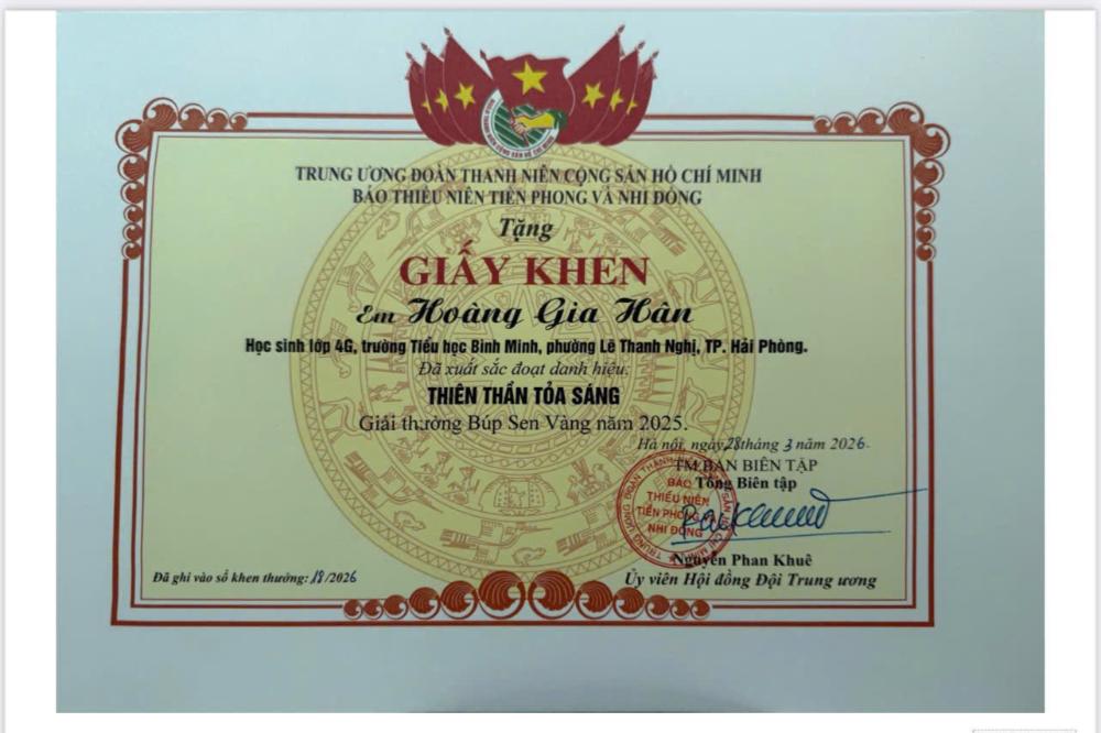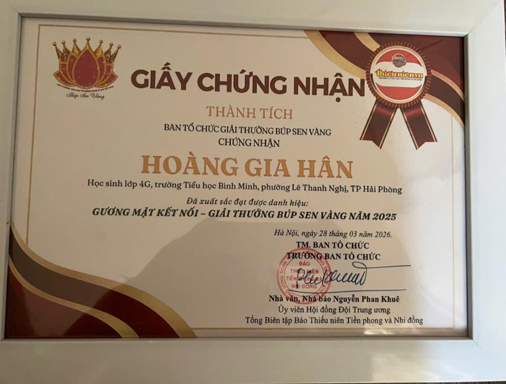 Danh hiệu “Tài năng tỏa sáng” chính là trái ngọt cho hành trình miệt mài rèn luyện của cô bé nhỏ. Đó không chỉ là sự ghi nhận, mà còn là nguồn động lực để Gia Hân tiếp tục nuôi dưỡng đam mê, hoàn thiện bản thân và vươn xa hơn trên con đường nghệ thuật.