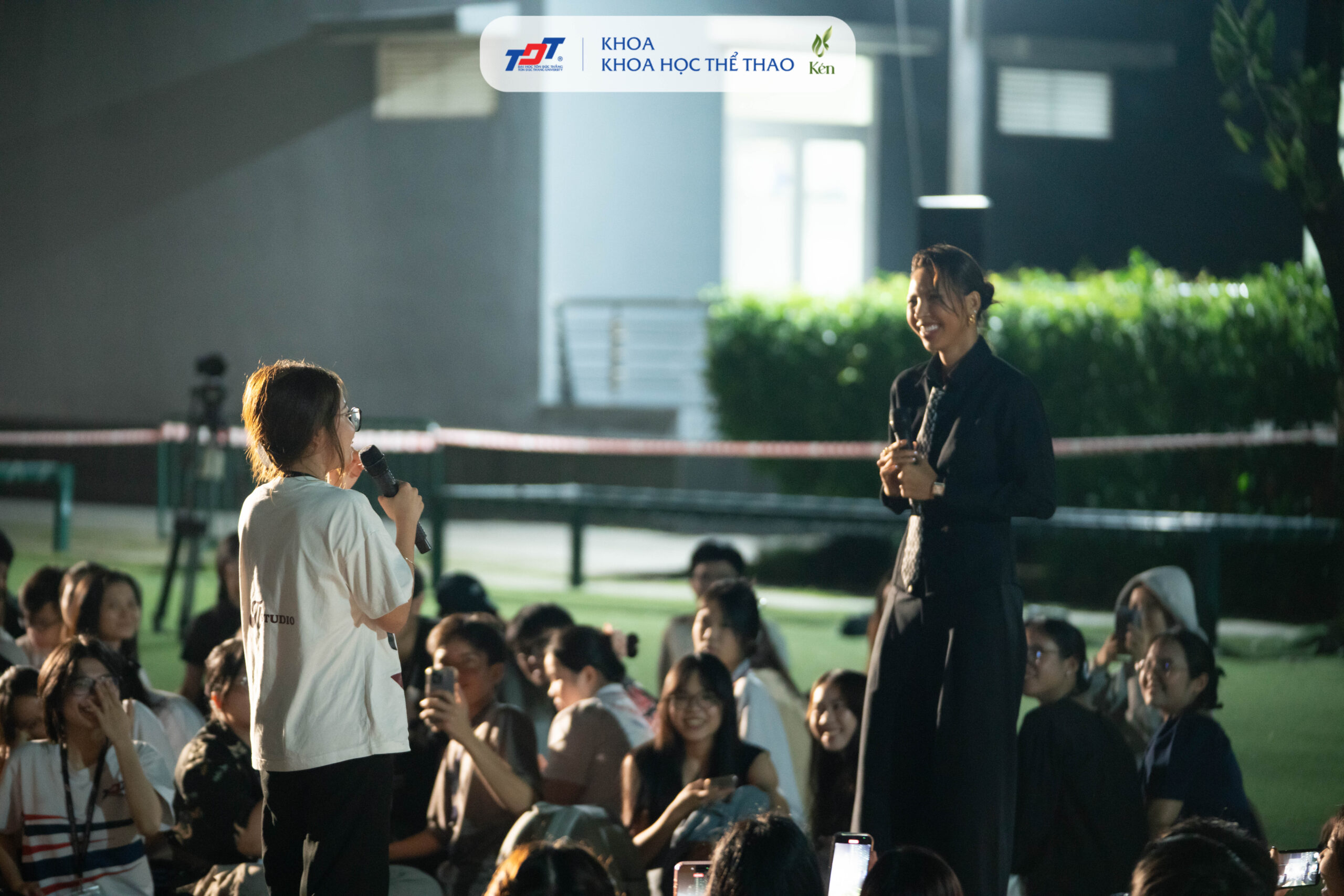 Phần giao lưu sau đó thu hút sự quan tâm lớn khi nhiều sinh viên đặt câu hỏi về định hướng tương lai, bản lĩnh và sự tự tin. Các lời khuyên gần gũi, thực tế giúp người trẻ nhìn nhận rõ hơn về hành trình trưởng thành của mình. Bên cạnh nội dung chính, chương trình còn có khu vực trải nghiệm từ các thương hiệu đồng hành, mang đến nhiều quà tặng, hoạt động tương tác và tạo không khí sôi nổi cho sự kiện.