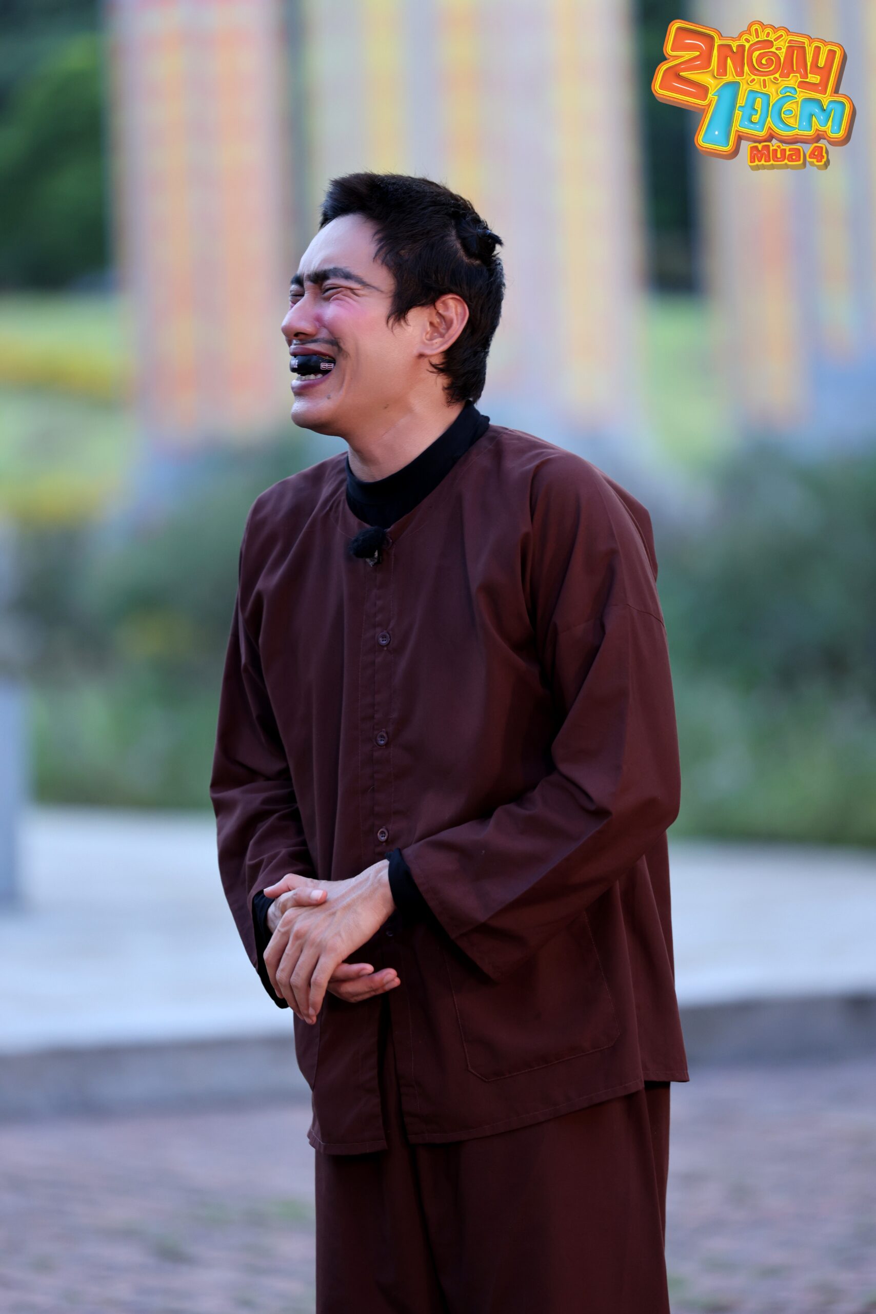 Điều đó đồng nghĩa với việc Kiều Minh Tuấn được gỡ bỏ nhân dạng A Nở của mình mà trở về bình thường. Màn biến hình của chú Sáu cũng hài hước khác người bình thường. Không chỉ đọc câu thần chú giống người khác, Kiều Minh Tuấn còn đứng trước gương khấn vái, biểu cảm vô cùng thú vị, thực hiện những hành động biến hình “cồng kềnh” khiến anh em không khỏi cười nghiêng ngả.