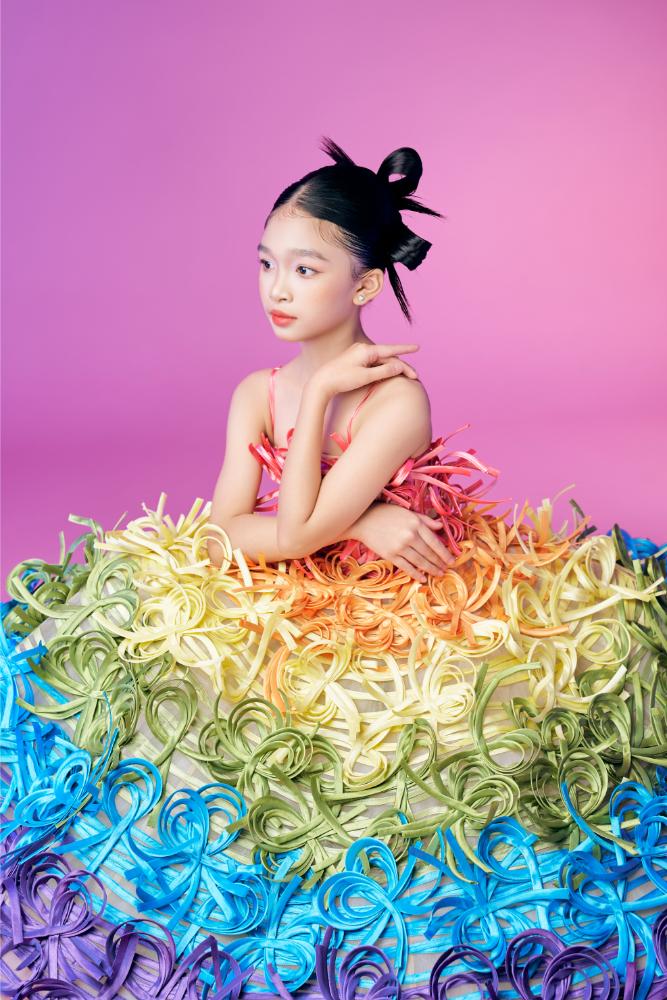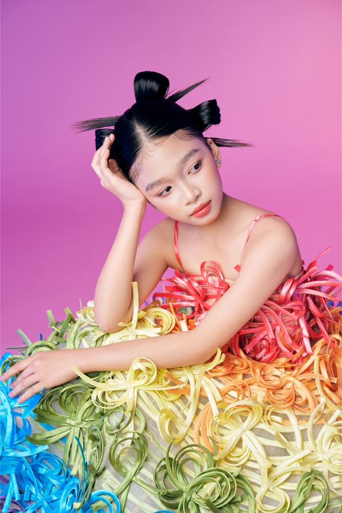 Không cần sân khấu lớn hay ánh đèn rực rỡ, Ruby Tâm Nhi vẫn tỏa sáng trong bộ ảnh xuân mới khi khoác lên mình ba thiết kế lấy cảm hứng từ bánh xèo, bánh rế và mứt dừa của NTK Nguyễn Minh Công. Ở tuổi 11, mẫu nhí ghi điểm bởi thần thái tự tin, biểu cảm mềm mại và khả năng làm chủ trang phục.