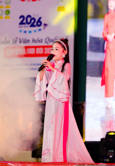 Không dừng lại ở việc làm mẫu, Sơn Ca tiếp tục gây bất ngờ khi cầm mic trở thành ca sĩ. Với chất giọng trong veo như đúng cái tên “Sơn Ca”, cô bé đã mang đến một màn trình diễn âm nhạc đầy cảm xúc. Tiết mục âm nhạc của Sơn Ca không chỉ đơn thuần là biểu diễn, mà còn là sự kết nối văn hóa đầy tinh tế.