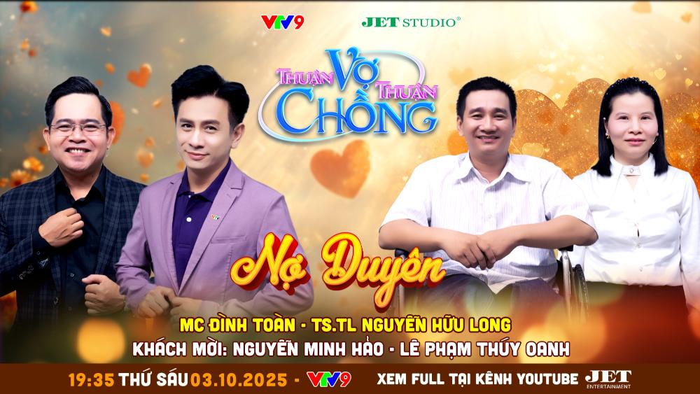 Thuận Vợ Thuận Chồng với câu chuyện “Nợ duyên” của đôi vợ chồng Thúy Oanh – Minh Hảo sẽ phát sóng lúc 19:35, thứ Sáu ngày 3/10/2025 trên kênh VTV9. Chương trình do VTV9 phối hợp cùng Jet Studio thực hiện.