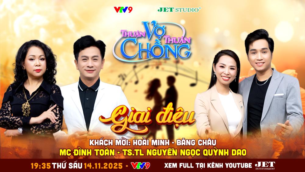 Thuận Vợ Thuận Chồng với câu chuyện “Giai điệu” của đôi vợ chồng Hoài Minh – Băng Châu sẽ phát sóng lúc 19:35, thứ Sáu ngày 14/11/2025 trên kênh VTV9. Chương trình do VTV9 phối hợp cùng Jet Studio thực hiện.