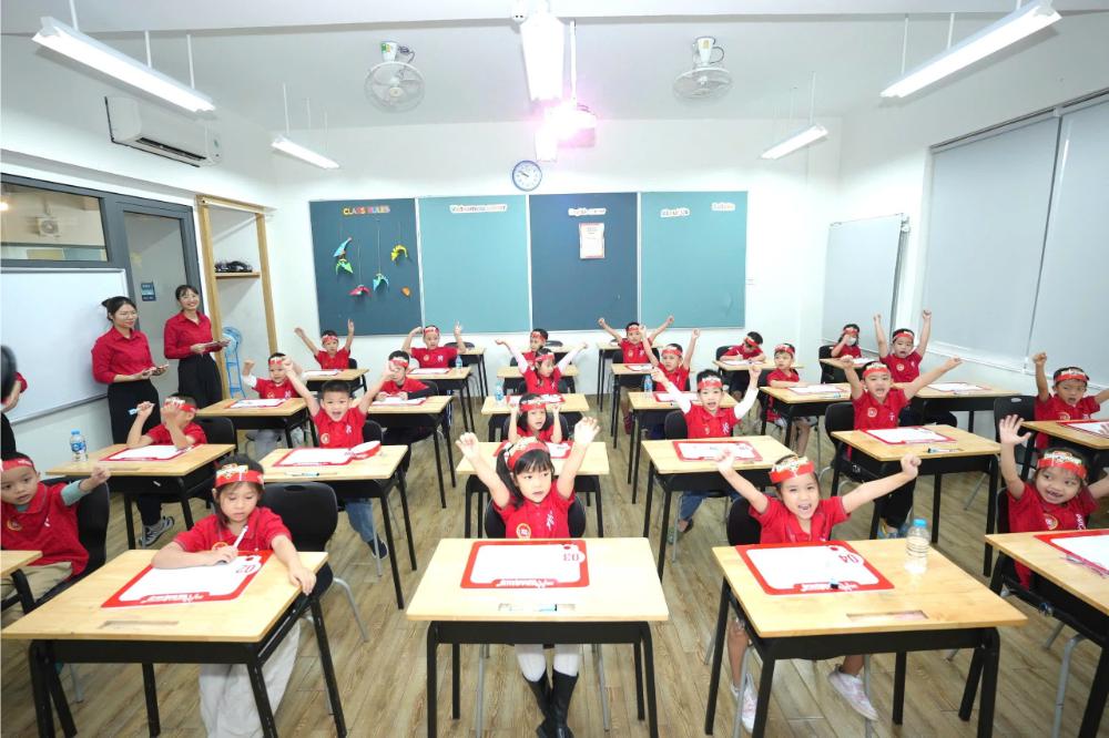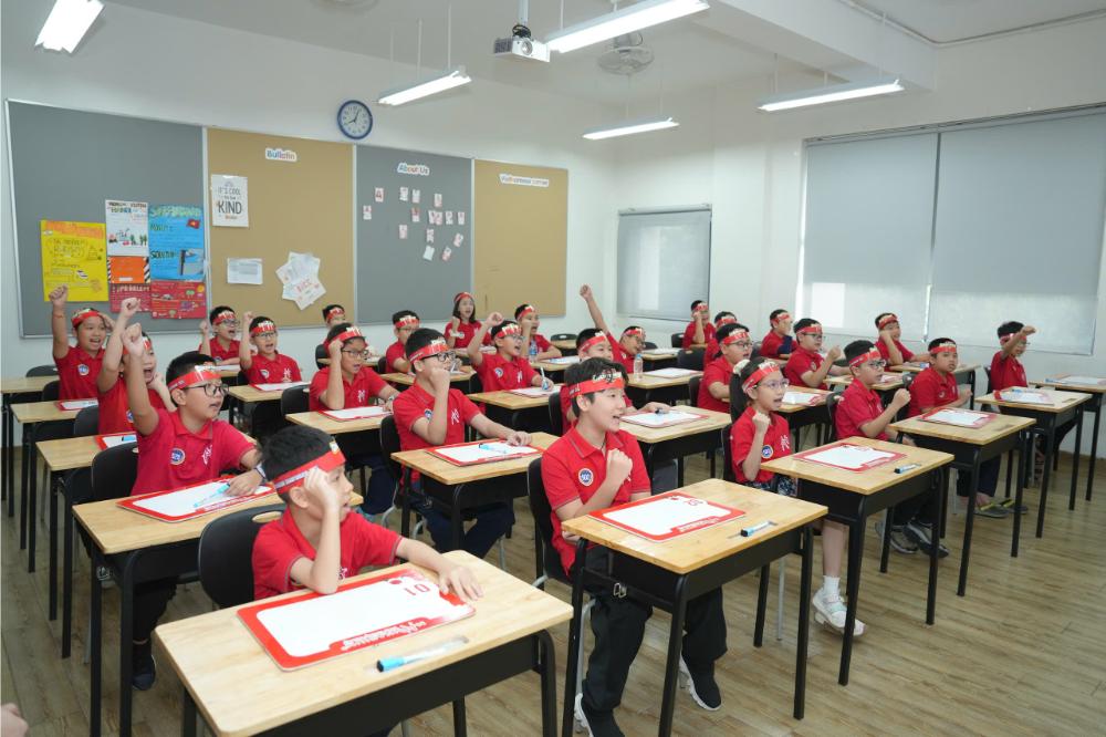 Học sinh tự tin giơ cao đáp án của mình, thể hiện tinh thần bản lĩnh và quyết tâm trong từng thử thách