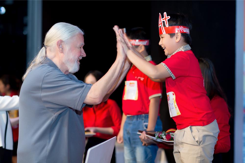 Giáo sư Larry Martinek- Người sáng lập Phương pháp Mathnasium – Trưởng hội đồng chuyên môn cuộc thi gửi lời chúc mừng đến các em học sinh và Mathnasium Việt Nam tại vòng Chung kết năm nay